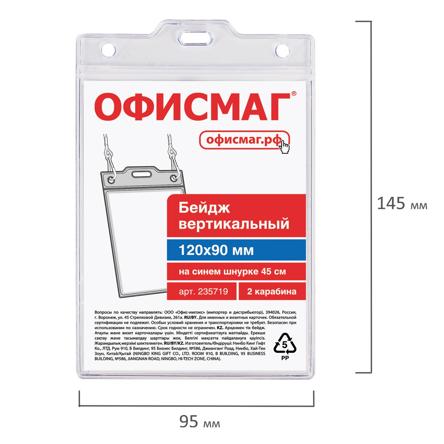 | Размер бейджа (ДхШ) | 145х95 |