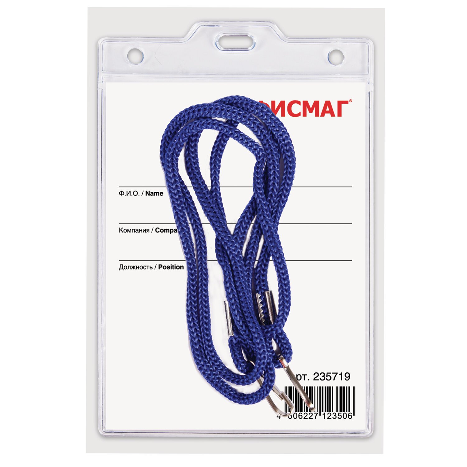 Бейдж вертикальный БОЛЬШОЙ (120х90 мм), на синем шнурке 45 см, 2 карабина, BRAUBERG, 235716