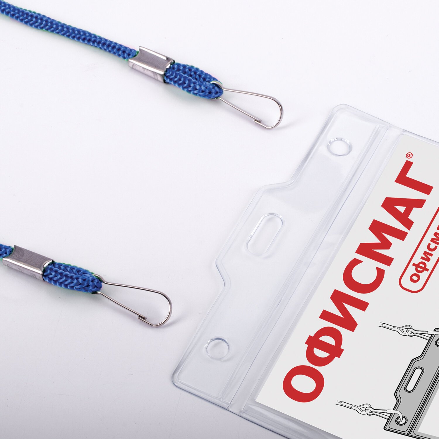 Бейдж горизонтальный БОЛЬШОЙ (90х120 мм), на синем шнурке 45 см, 2 карабина, BRAUBERG, 235715