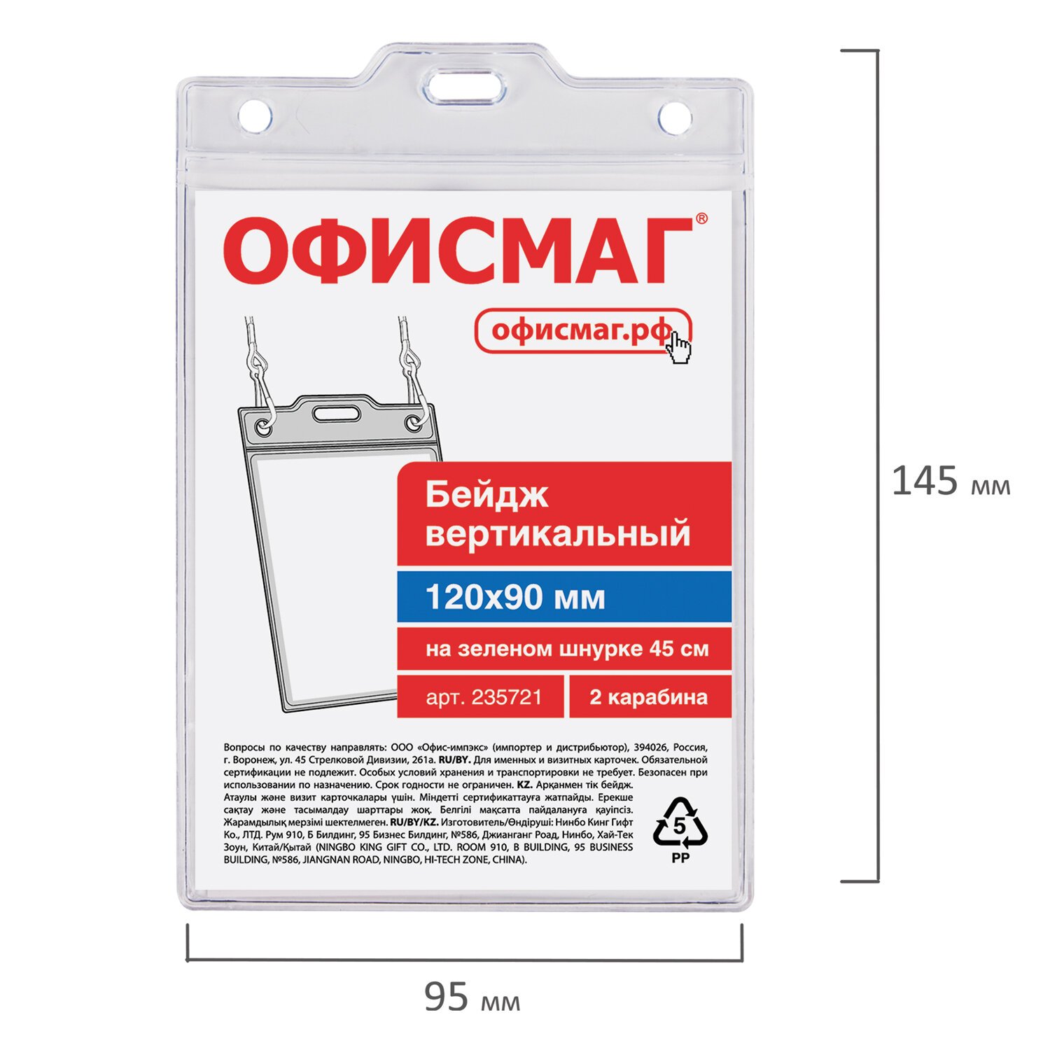 | Размер бейджа (ДхШ) | 145х95 |