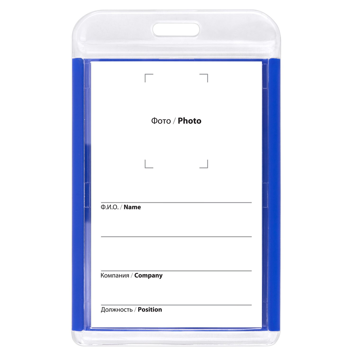 Бейдж вертикальный для пропуска и ID-карт 85х54 мм синий, BRAUBERG ULTRA, 238910