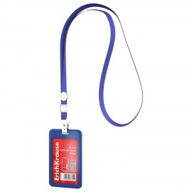 Бейдж вертикальный ERICH KRAUSE (54х85мм), корпус прозрачный, цвет ленты синий, слайд, 63740
