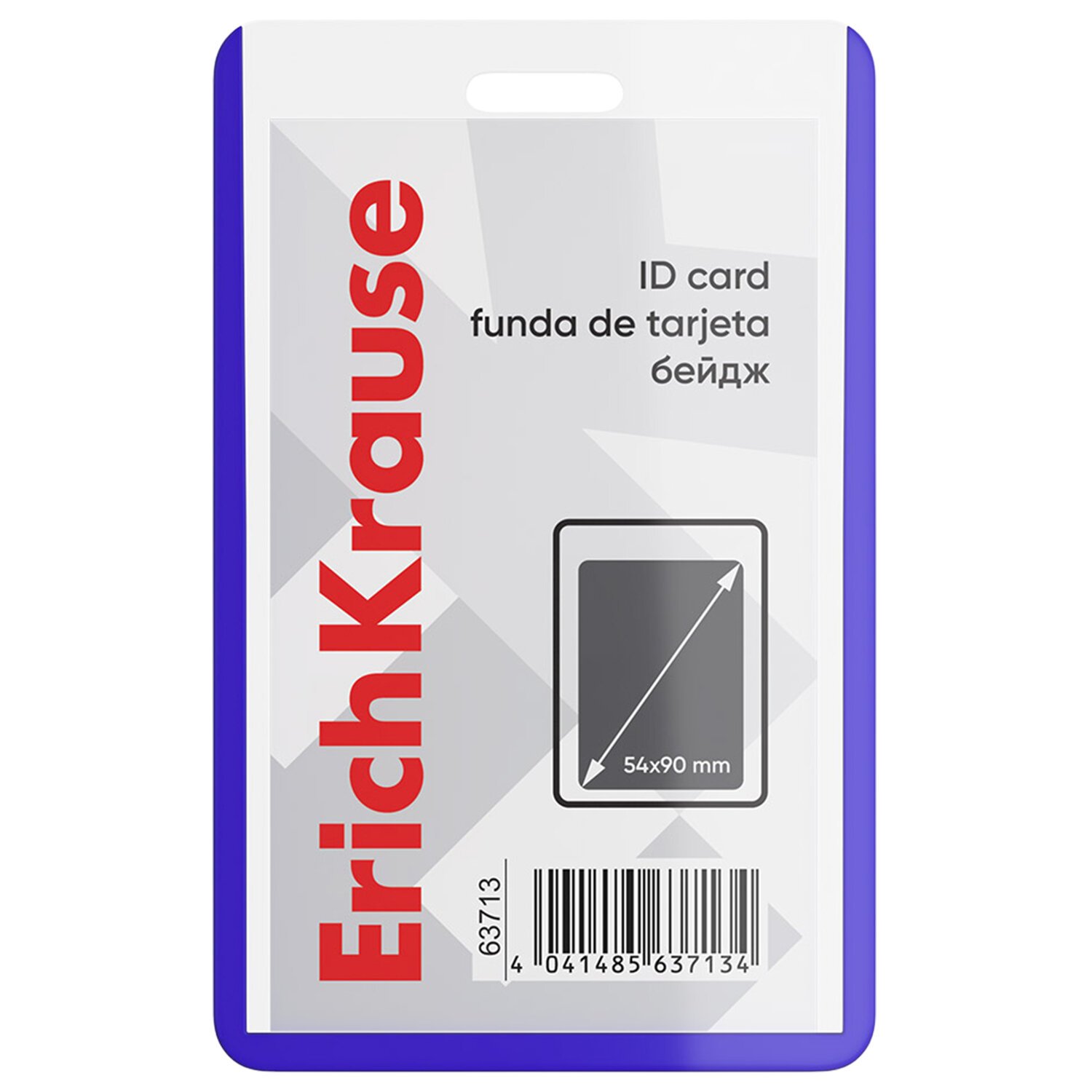 Бейдж вертикальный ERICH KRAUSE (54х90мм), корпус прозрачный с синим, 63713