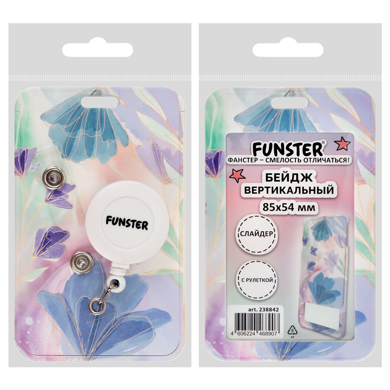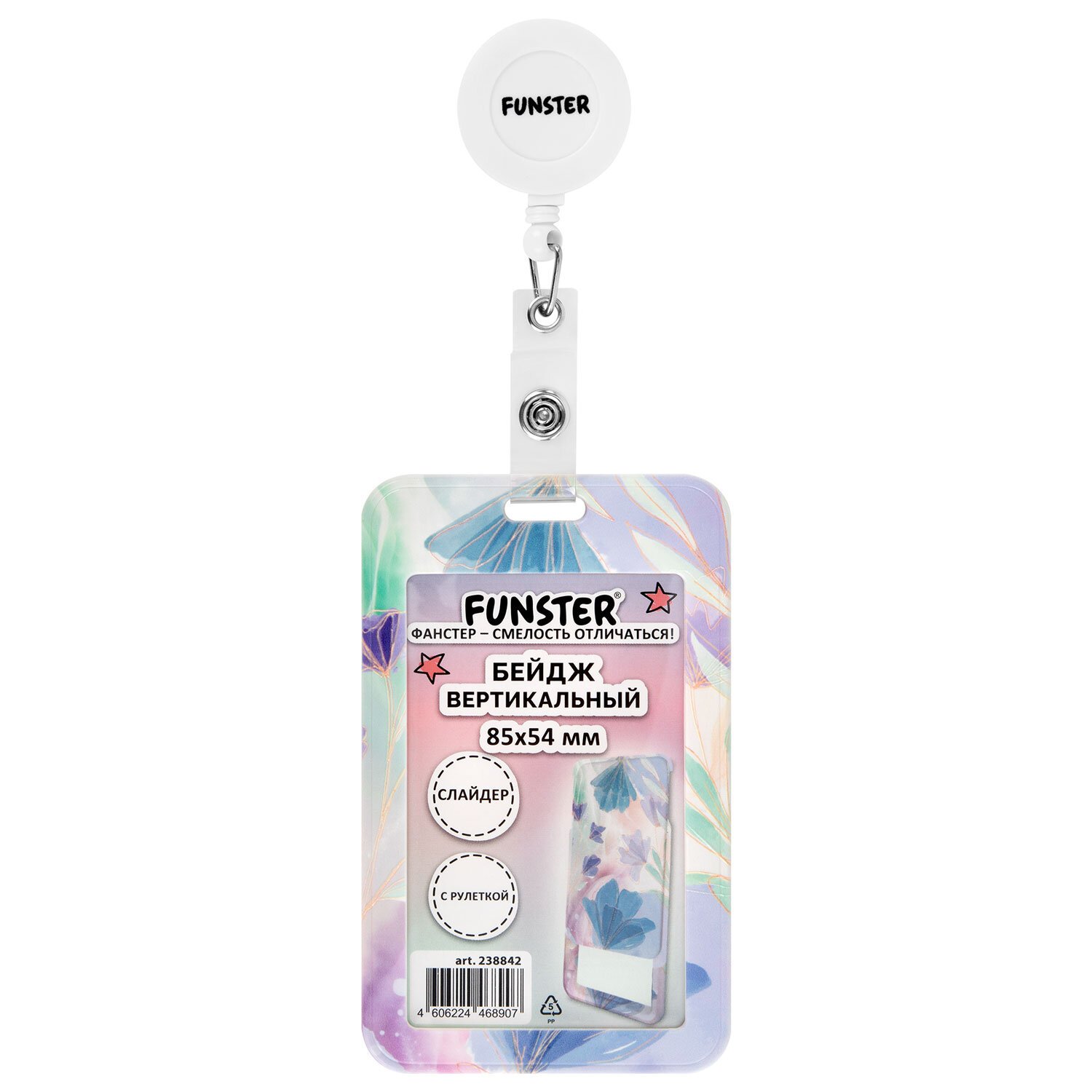 Вертикальный бейдж с лентой FUNSTER для именной карточки предназначен для идентификации сотрудников в компаниях, подойдет для школьного пропуска или проездного.