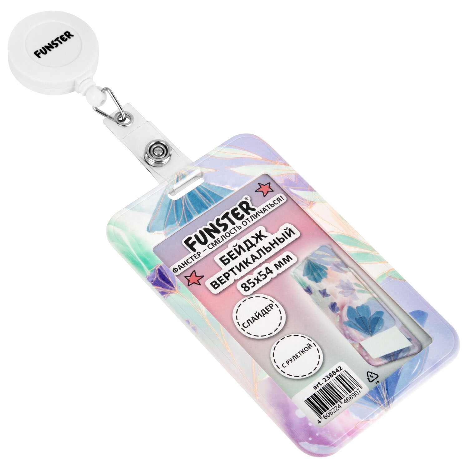 Бейдж вертикальный с 3D печатью "Отражение" (85х54 мм), с рулеткой, СЛАЙДЕР, FUNSTER, 238841