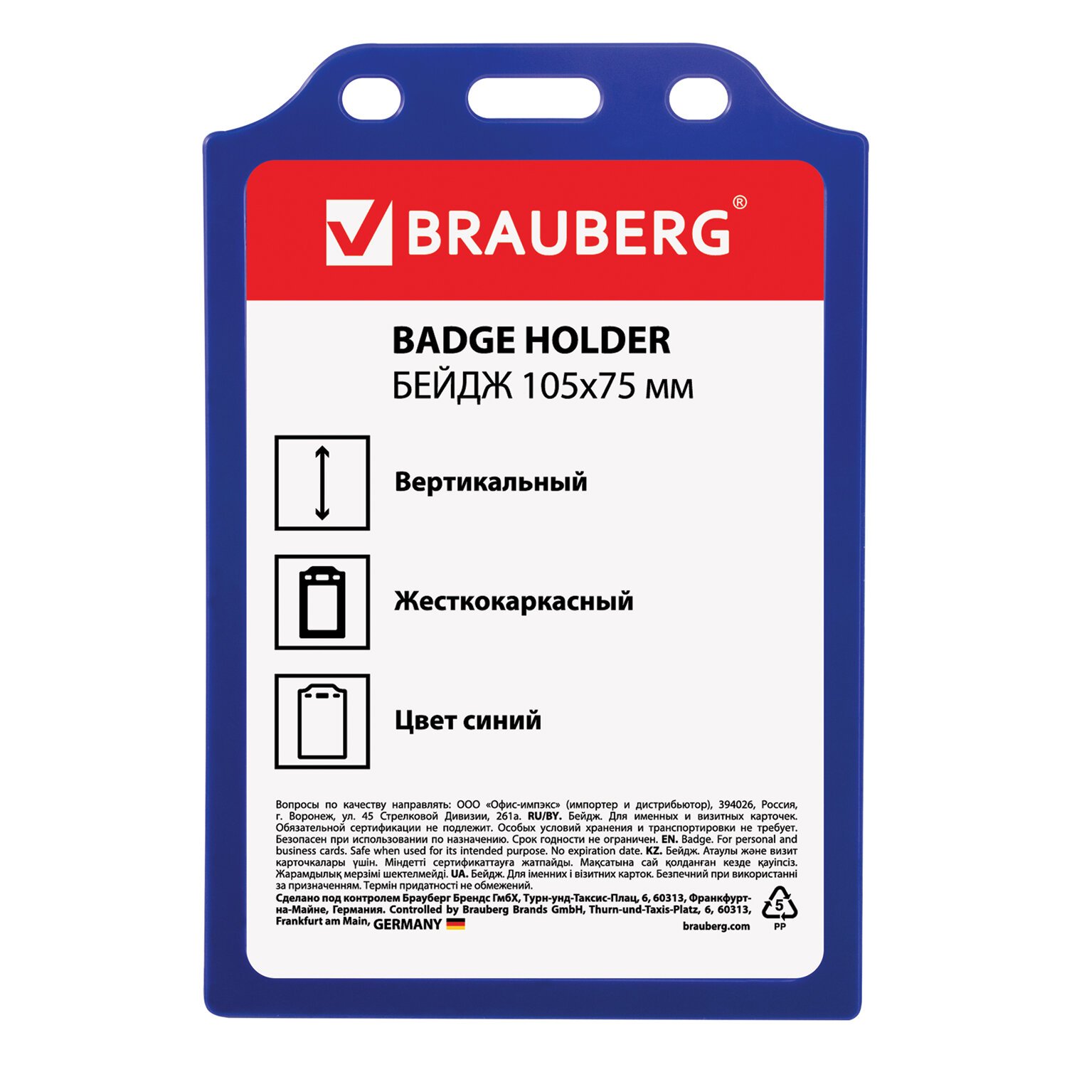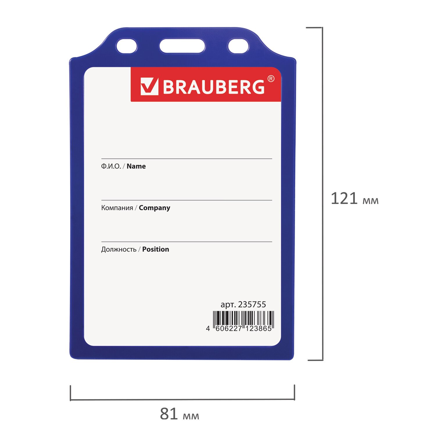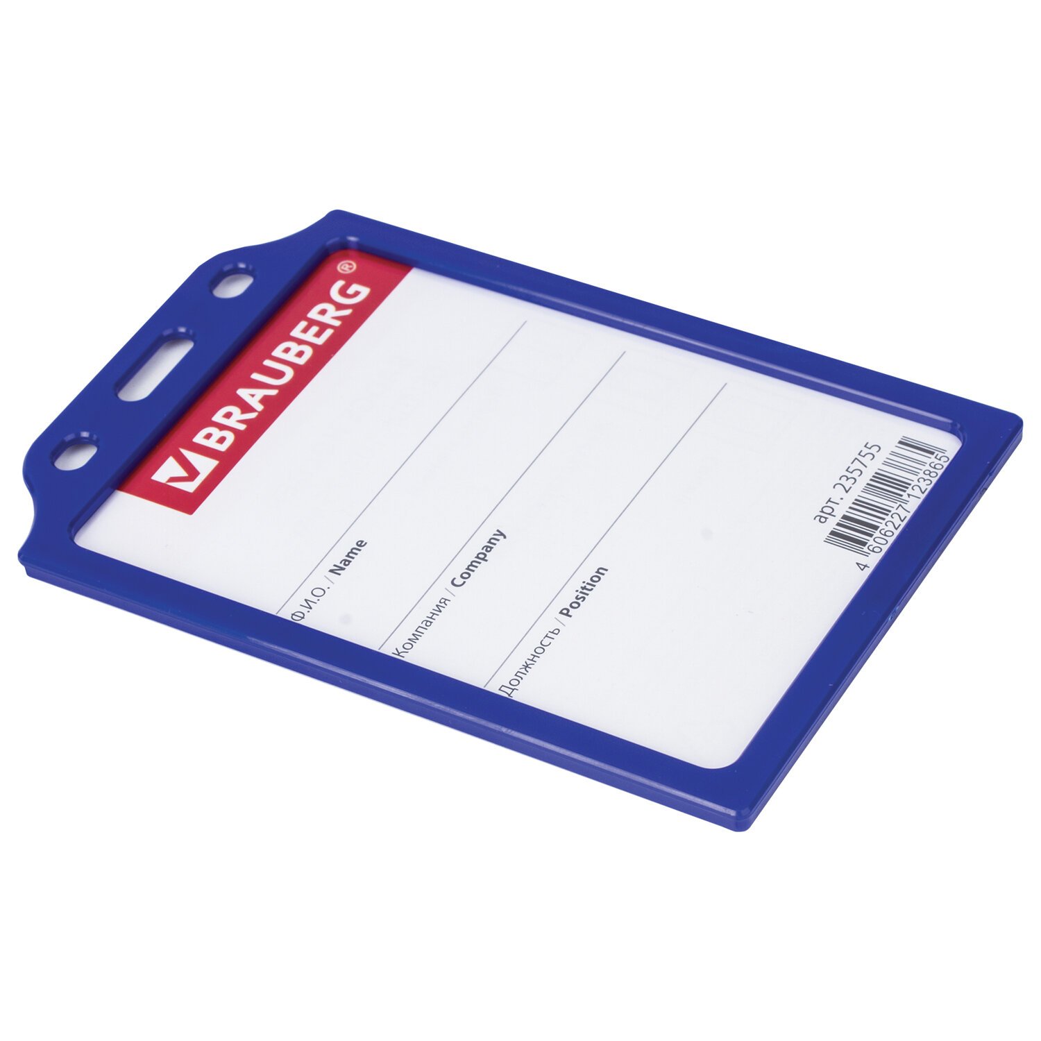 Бейдж вертикальный жесткокаркасный (105х75 мм), без держателя, СИНИЙ, BRAUBERG, 235755