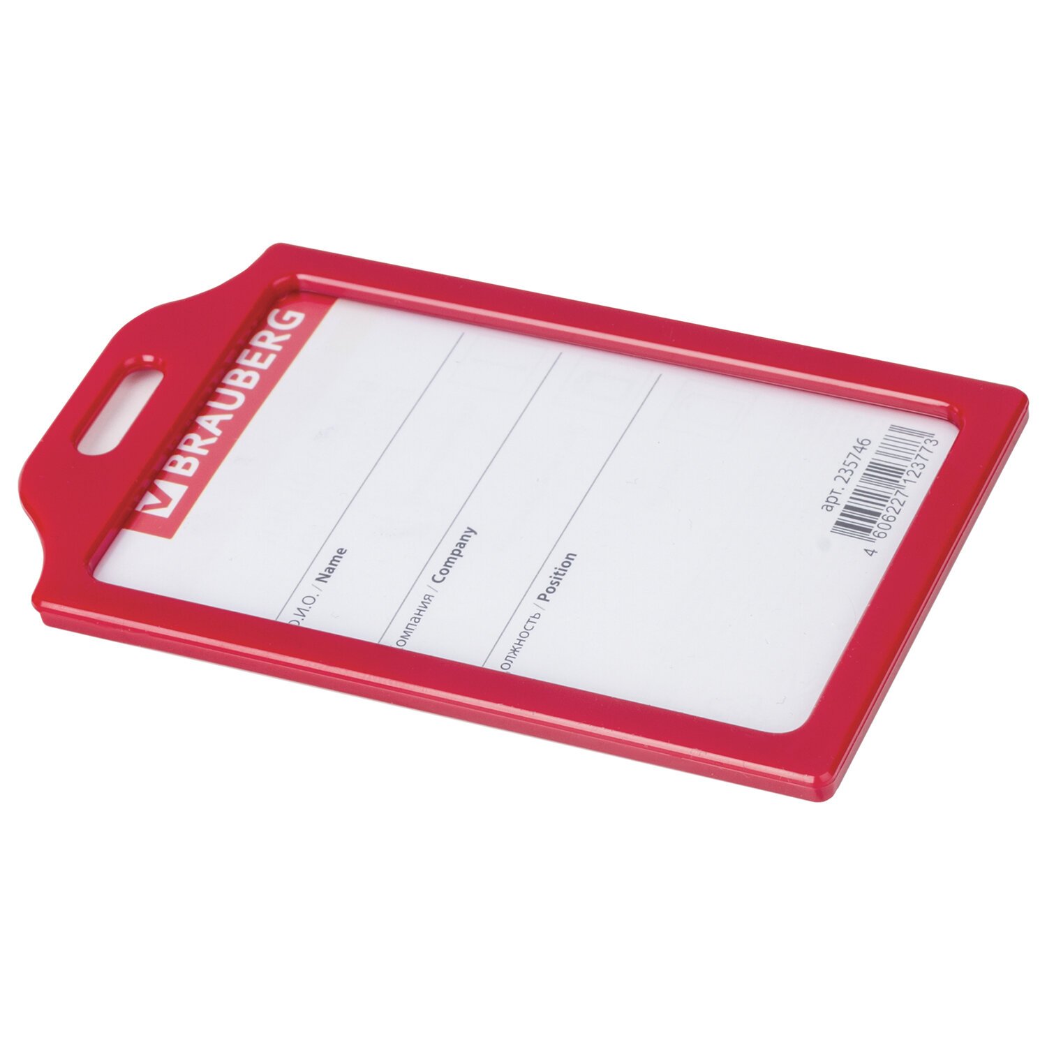 Бейдж вертикальный жесткокаркасный (85х55 мм), без держателя, КРАСНЫЙ, BRAUBERG, 235746