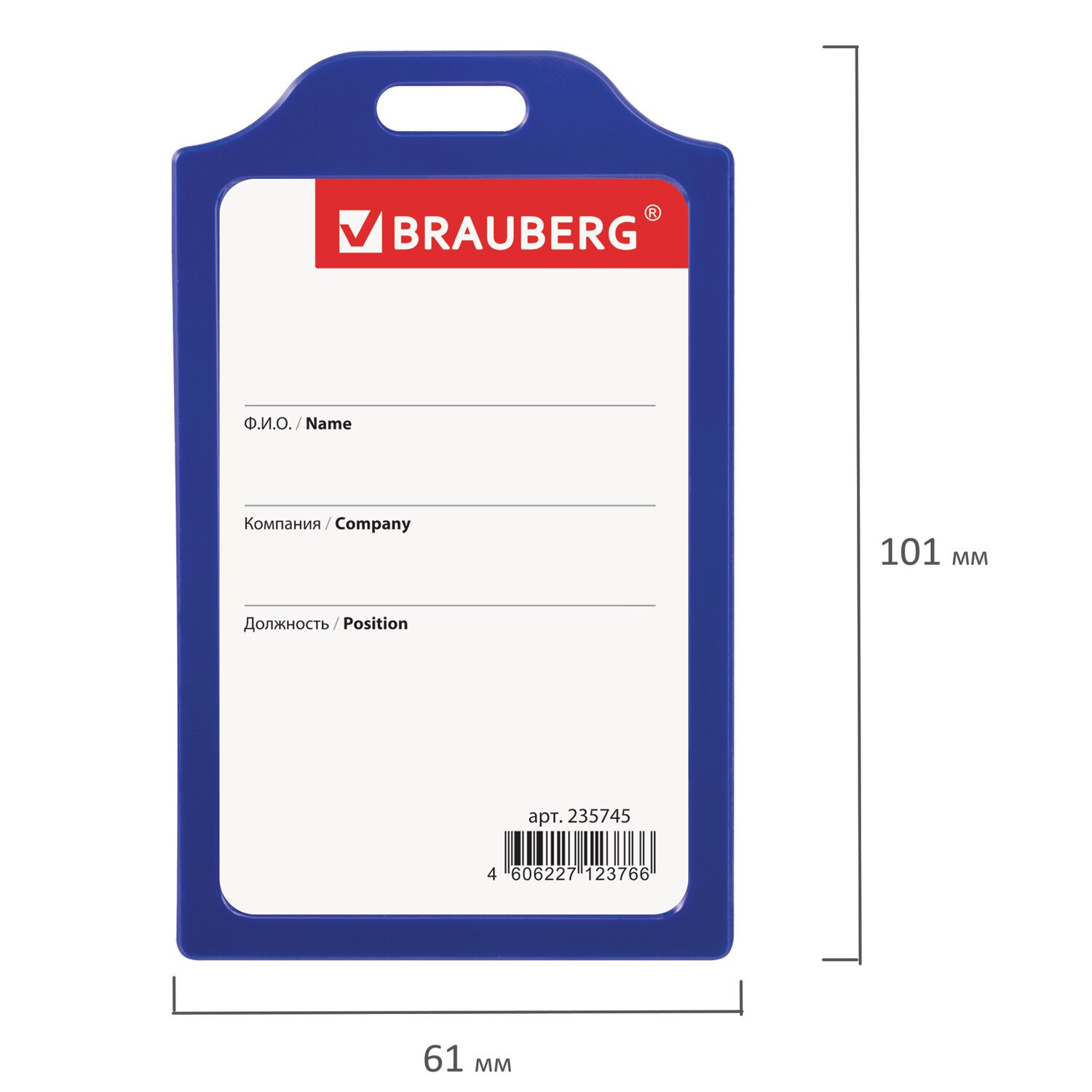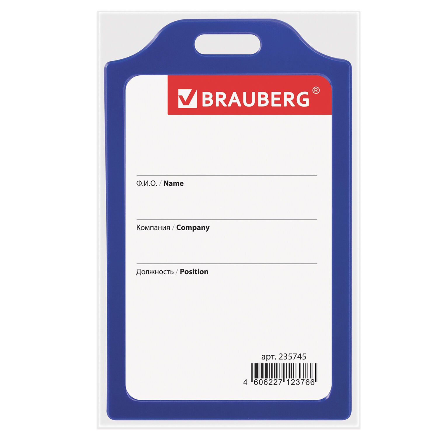 Бейдж вертикальный жесткокаркасный (85х55 мм), без держателя, СИНИЙ, BRAUBERG, 235745