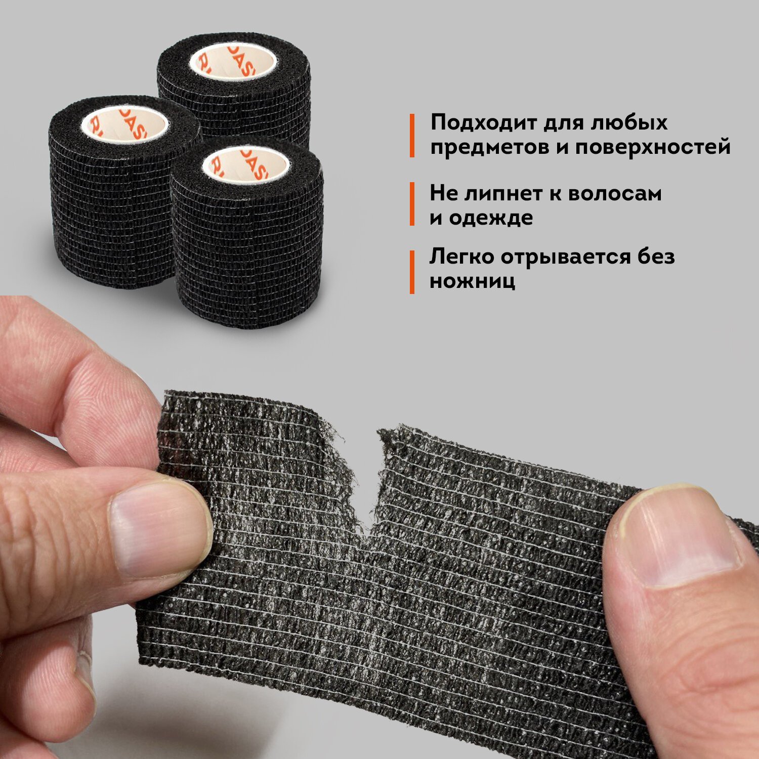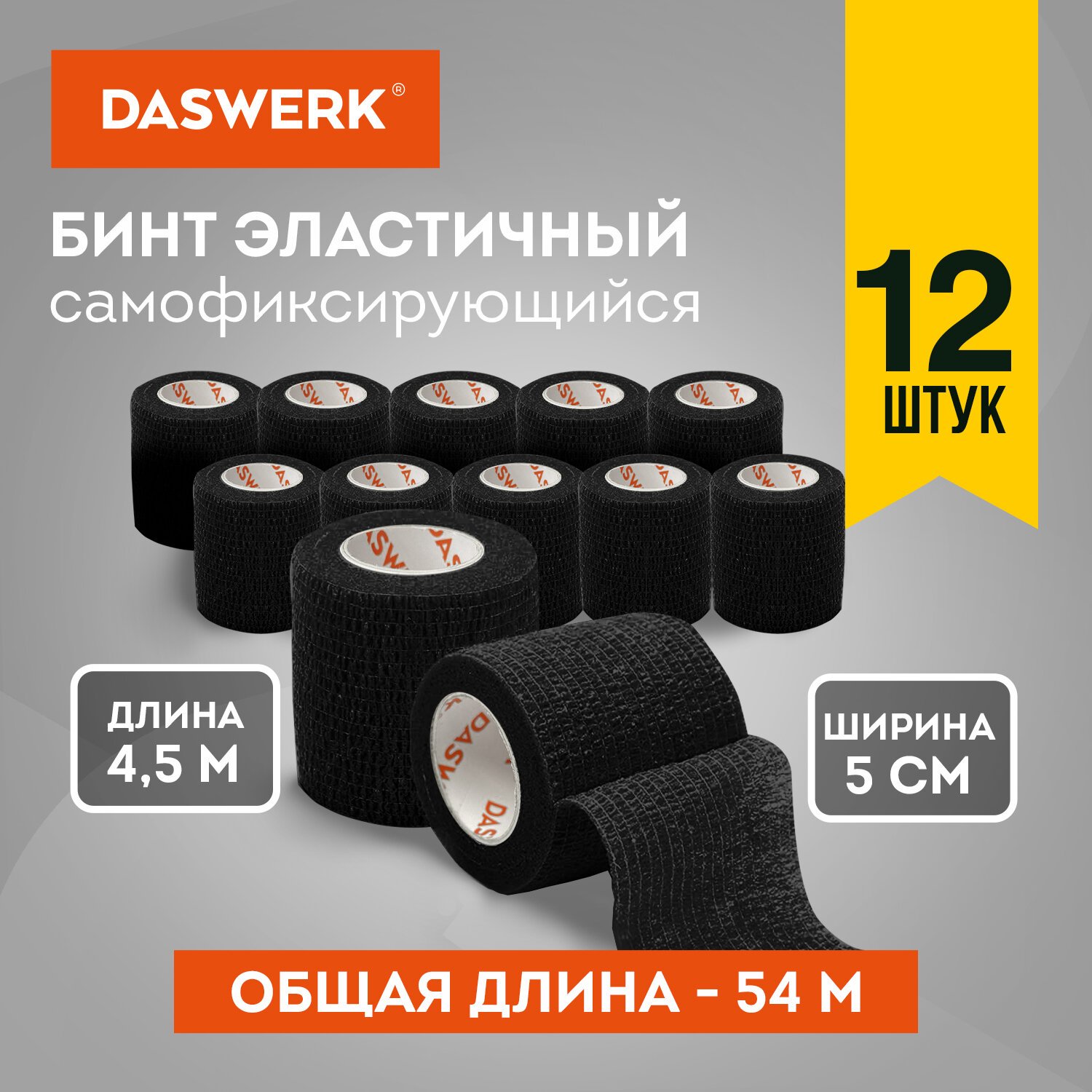 Бинт эластичный бандажный защитный самофиксирующийся, 4,5 м х 5 см, 12 рулонов, черный, DASWERK, 680041