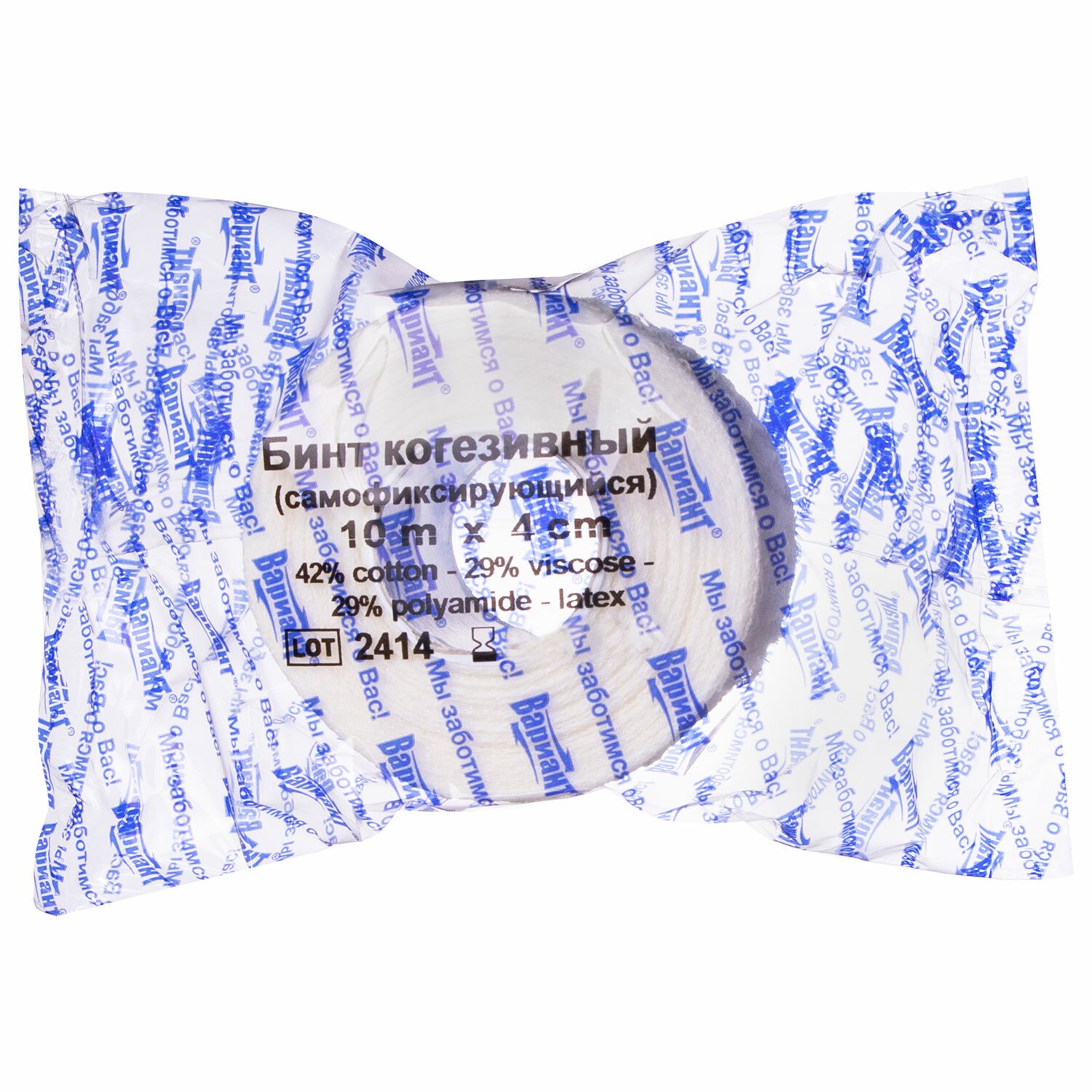 Бинт эластичный самофиксирующийся 10 м х 4 см, белый, КОМПЛЕКТ 10 шт., "ВАРИАНТ"