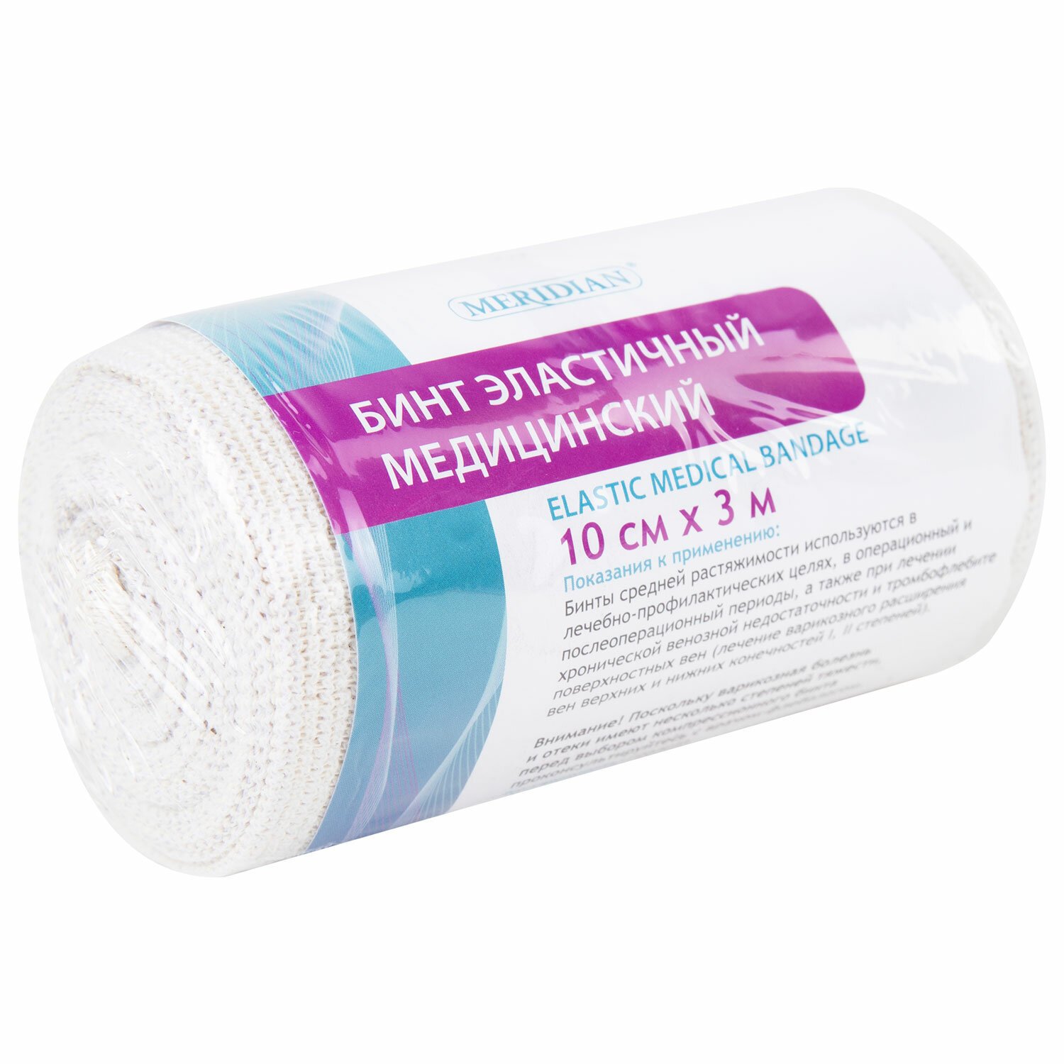 Бинт медицинский эластичный 3 м х 10 см с 2 застежками MERIDIAN