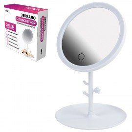 Зеркало настольное с LED подсветкой для макияжа, диаметр 17см, 3 режима свечения, аккумулятор 1200 mAh, цвет белый, WBZ, 609330