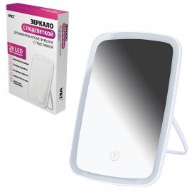 Зеркало настольное с LED подсветкой для макияжа, 24х17см, 3 режима свечения, аккумулятор 800 mAh, цвет белый, WBZ, 609333