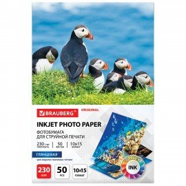 Фотобумага глянцевая, 10х15 см, 230 г/м2, односторонняя, 50 листов, BRAUBERG ORIGINAL, 363972