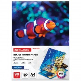 Фотобумага глянцевая, А4, 140 г/м2, односторонняя, 100 листов, ПАКЕТ, BRAUBERG ORIGINAL, 364414