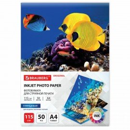 Фотобумага глянцевая, А4, 115 г/м2, односторонняя, 50 листов, BRAUBERG ORIGINAL, 363980