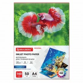 Фотобумага глянцевая, А4, 160 г/м2, односторонняя, 50 листов, BRAUBERG ORIGINAL, 363984