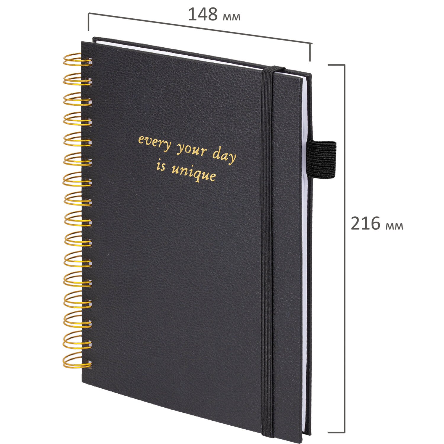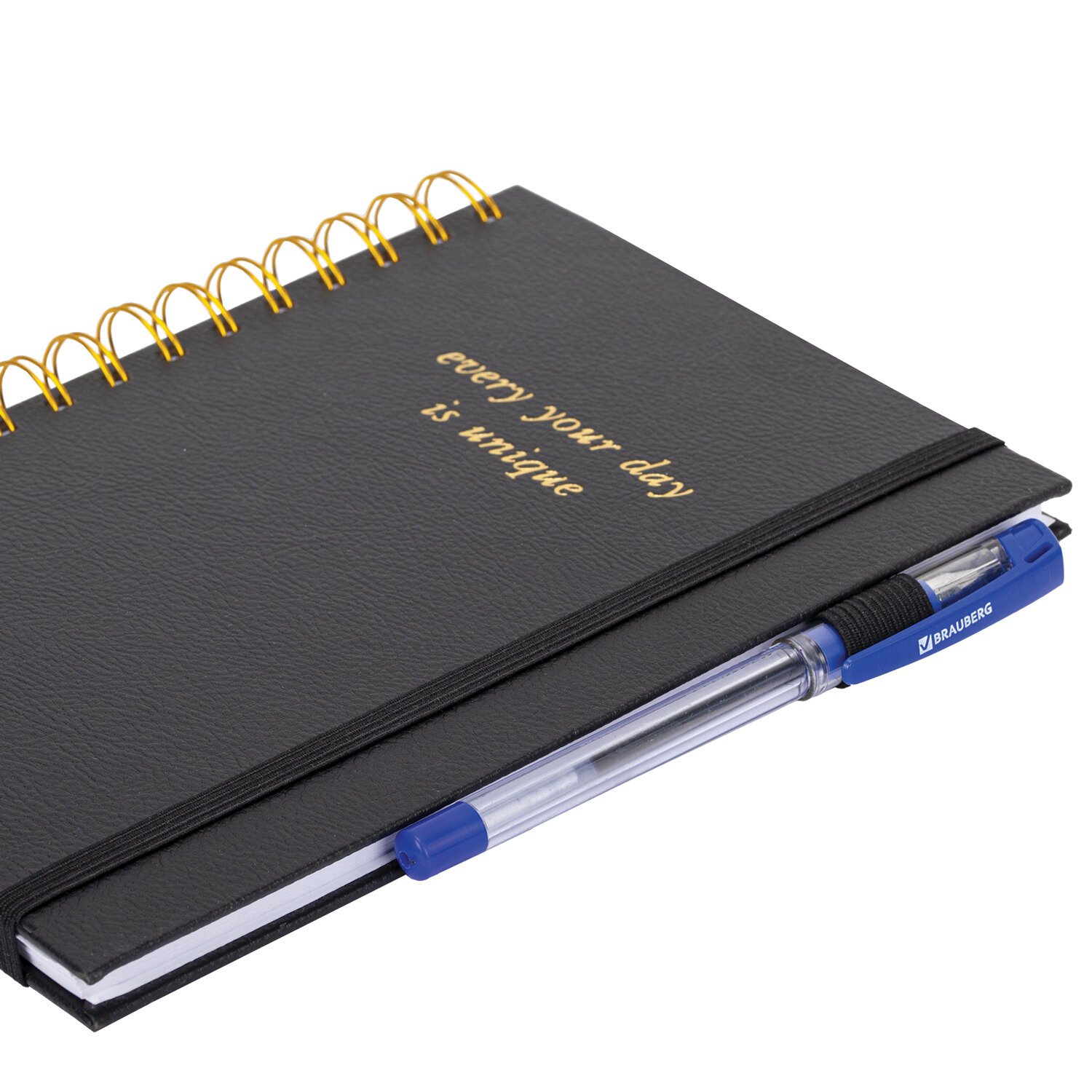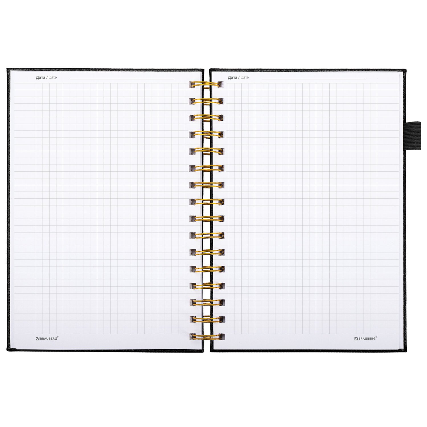 Бизнес-тетрадь на гребне А5 148х216мм BRAUBERG Calipso под кожу, резинка, клетка, 80л, черная, 116252
