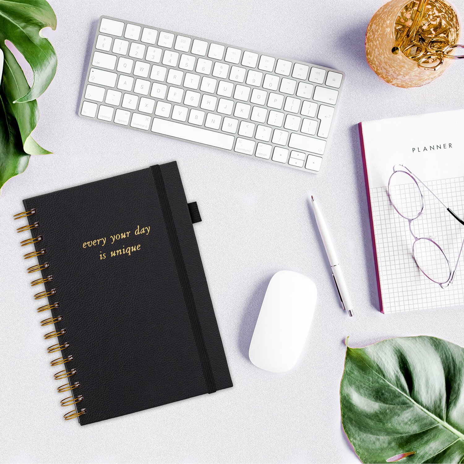 Тетрадь А5 (148x218 мм), BRAUBERG "Office PRO", гибкая, под кожу, гребень, 80 л., черная, 111046