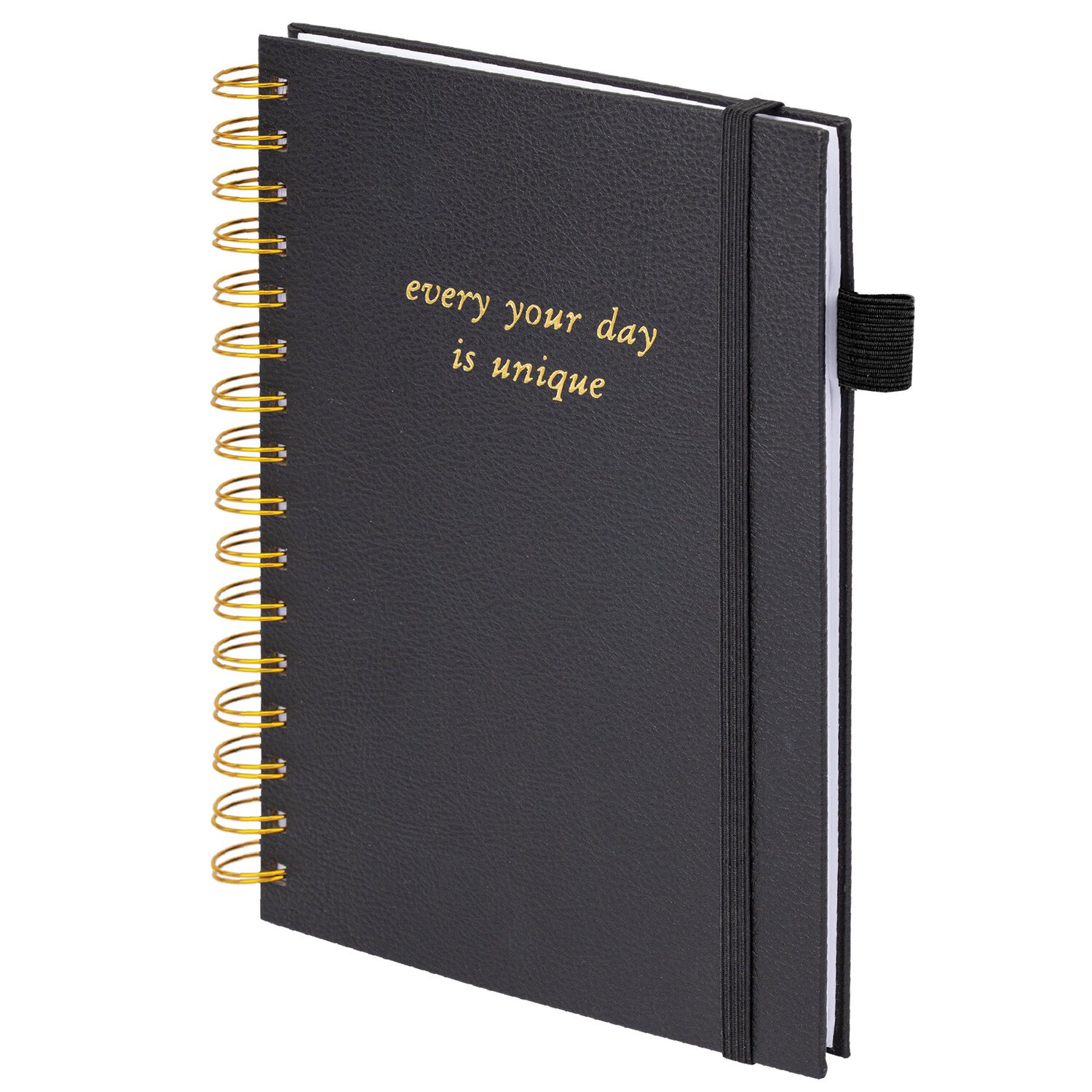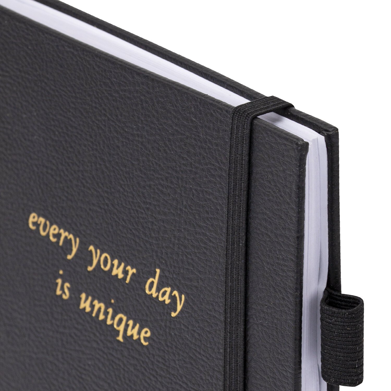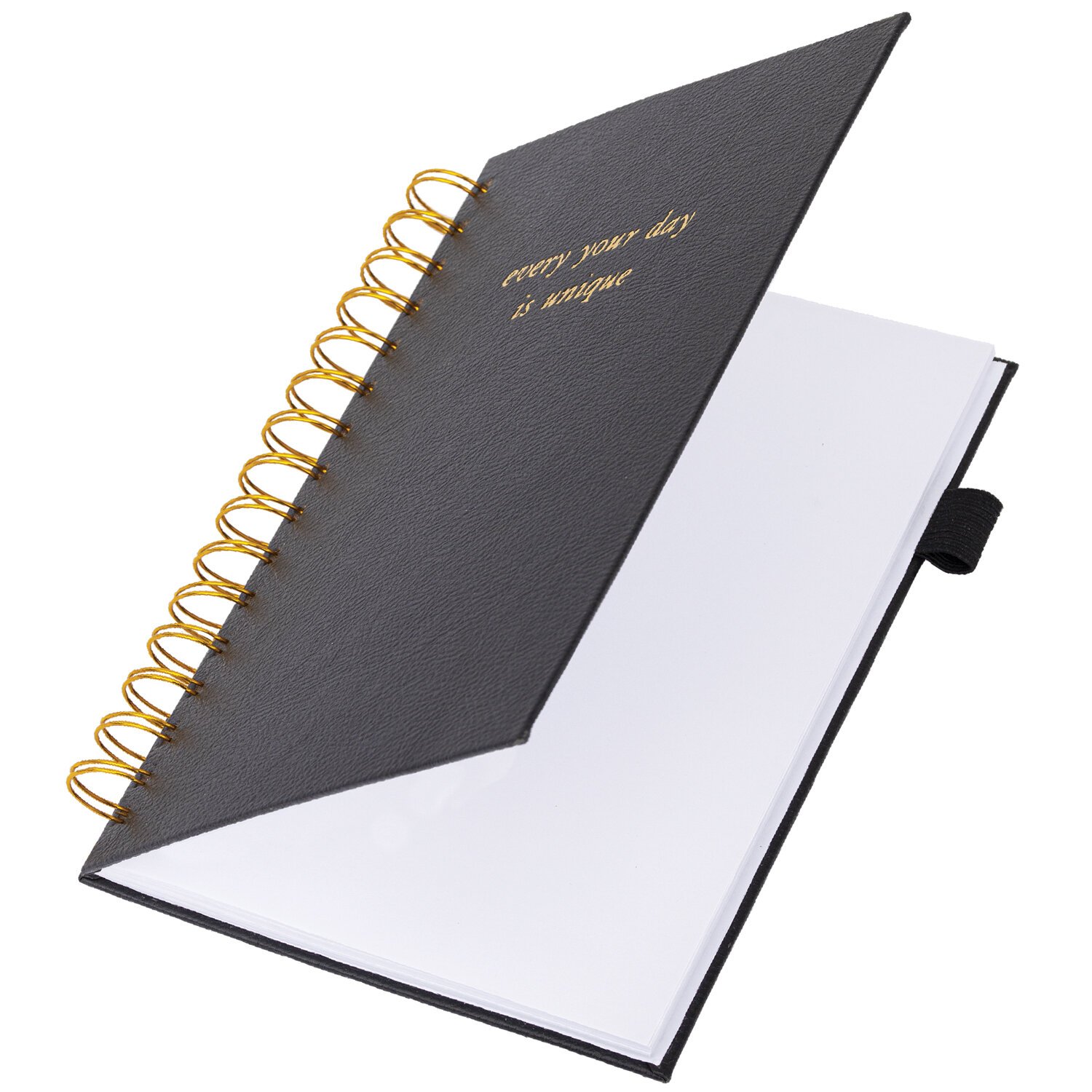 Твёрдая обложка стилизована под рельефную кожу, украшена надписью фольгой. Подходит для горячего тиснения. 80 листов позволят зафиксировать большой объем информации. Линовка блока в клетку (5х5 мм) дает возможность аккуратно заполнить цифровые значения, а также нанести чертежные зарисовки. Внутренний блок выполнен из бумаги белого цвета плотностью 70 г/м2, крепится на гребне. Снабжена резинкой-фиксатором, благодаря чему тетрадь не откроется в сумочке или портфеле, и листы не помнутся. Дополнением является держатель для ручки для большего комфорта. Формат тетради А5 (148х216 мм) позволит владельцу поместить её в кейс или сумку малых габаритов.