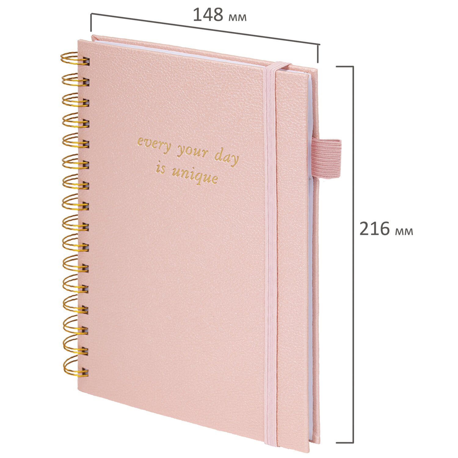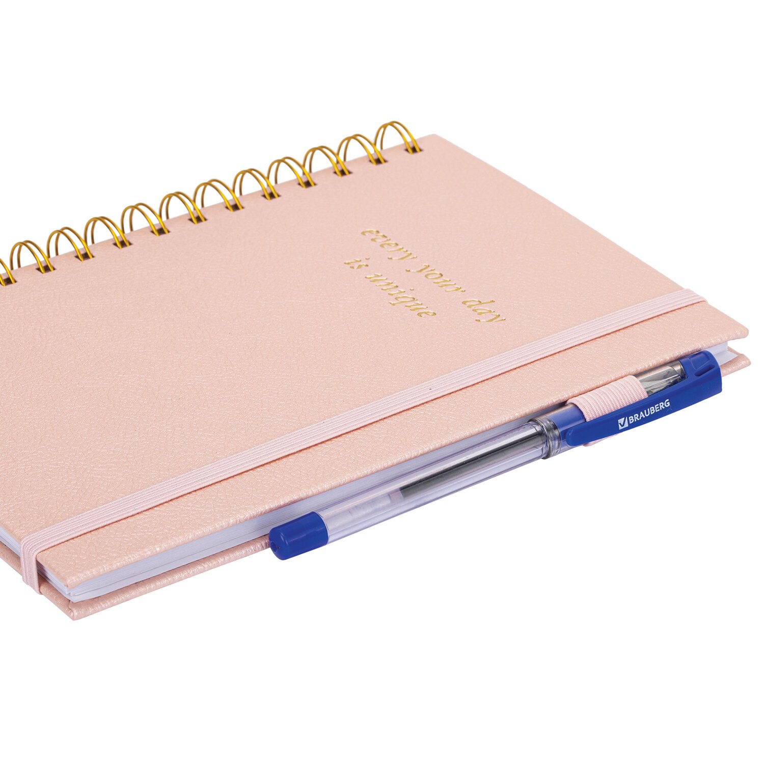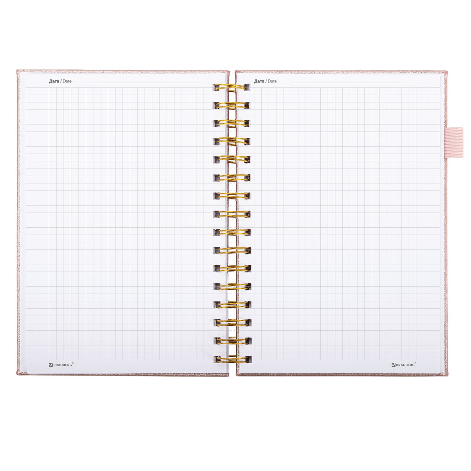 Бизнес-тетрадь на гребне А5 148х216мм BRAUBERG Calipso под кожу, резинка, клетка, 80л, розовая, 116251