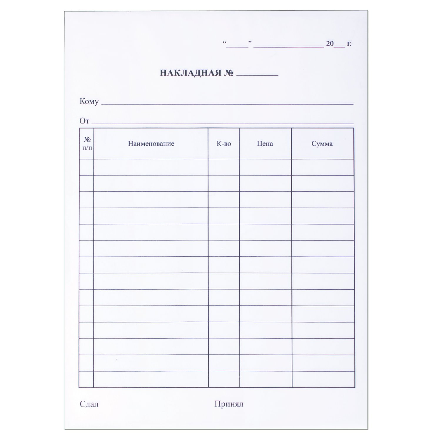 Бланк бухгалтерский, офсет, 2-слойный самокопирующийся, "Накладная", А5 (151х208 мм), СПАЙКА 50 шт., 130051
