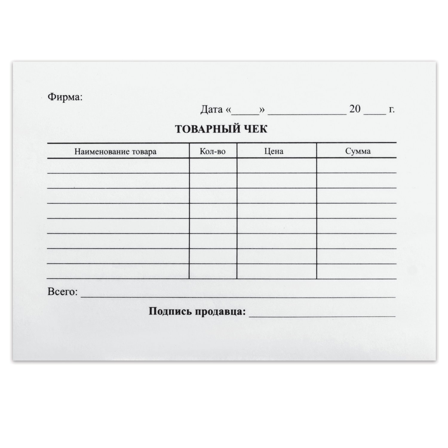 Бланк бухгалтерский типографский "Товарный чек", А6 (97х134 мм), СКЛЕЙКА 100 шт., 130015