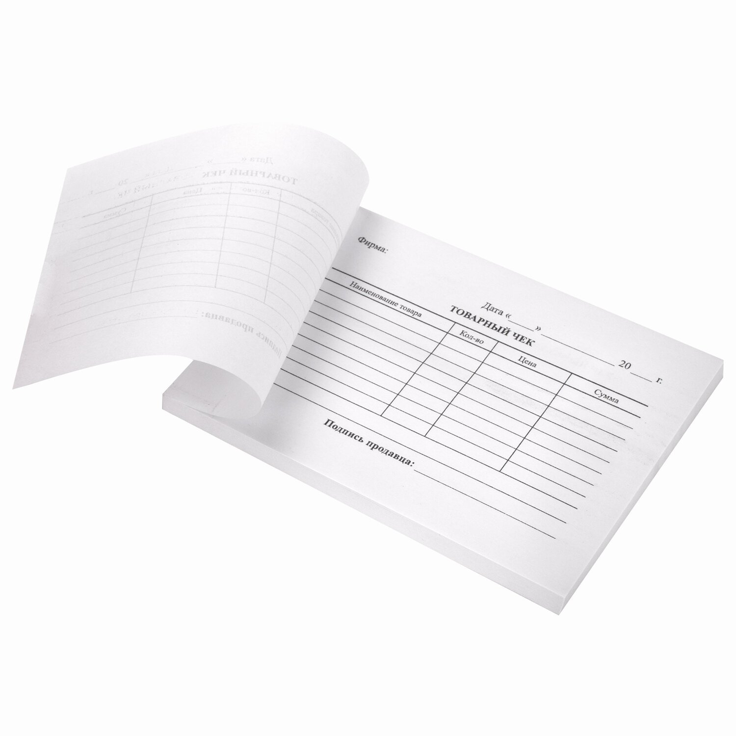 Бланк бухгалтерский, офсет, 2-х слойный самокопирующийся с подложкой, "Товарный чек", (110х143 мм), СПАЙКА 50 шт., 130154