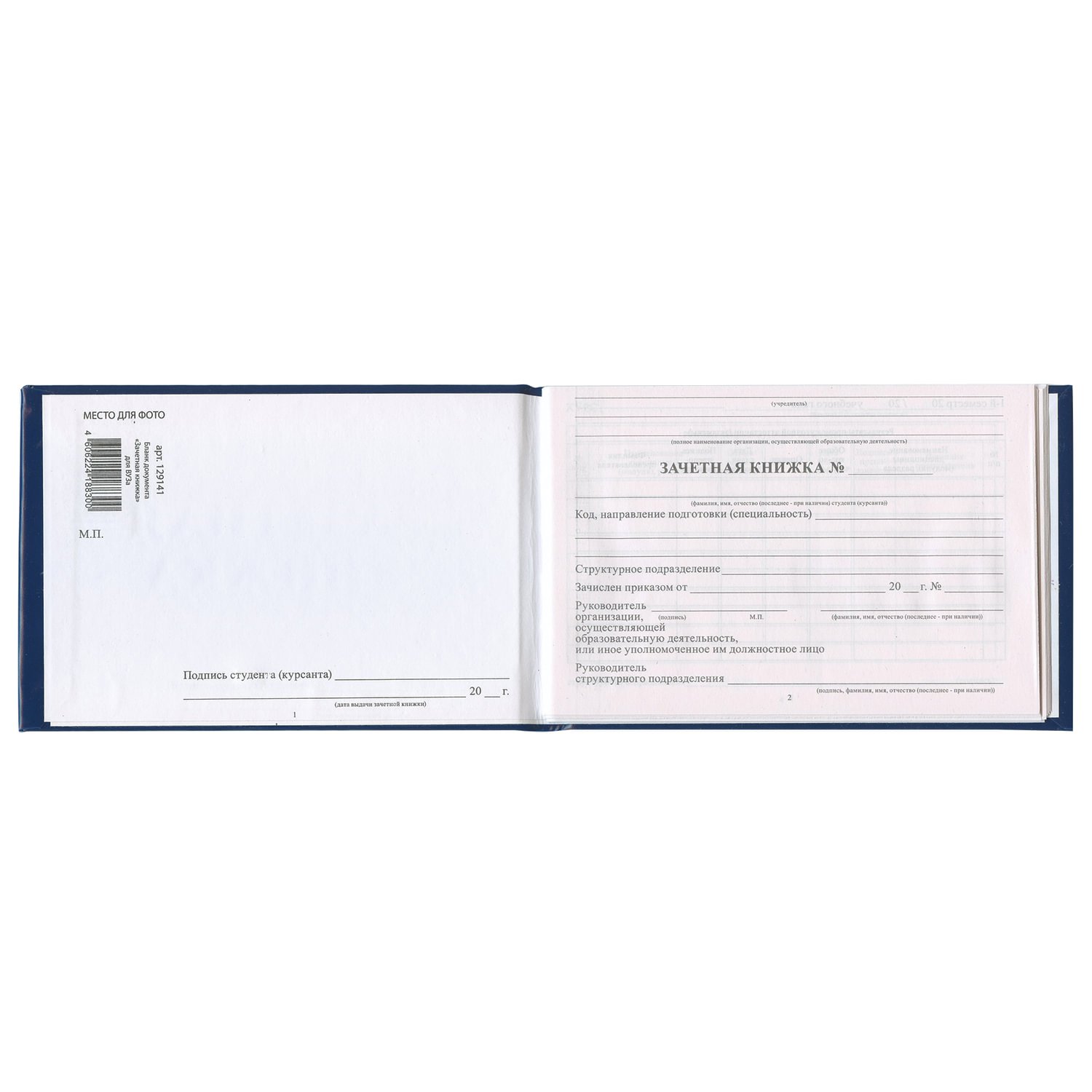 | Вид бланка | зачетная книжка |