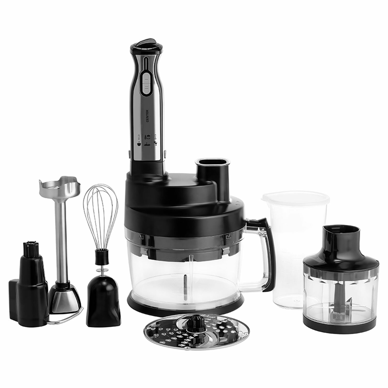 Блендер погружной CENTEK CT-1310, 1500 Вт, 2 скорости, 6 насадок, стакан, черный