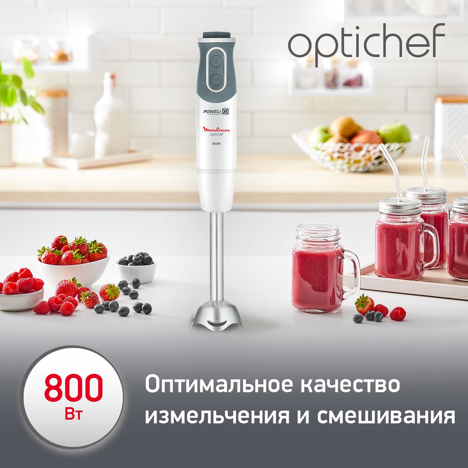 Блендер погружной MOULINEX DD642132, 800 Вт, 10 скоростей, 3 насадки, стакан, белый/серый, 7211002804