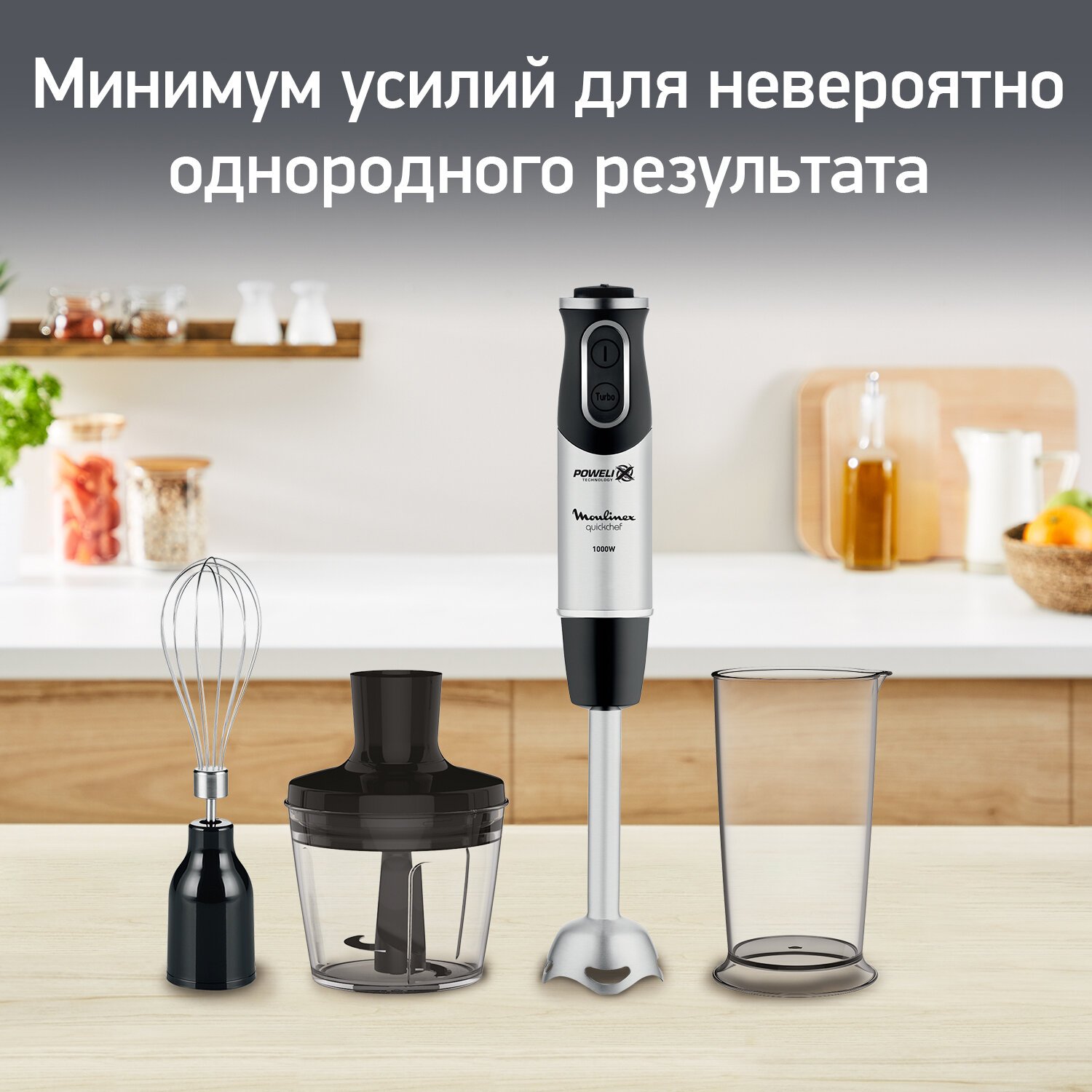 Блендер погружной MOULINEX DD655832, 1000 Вт, 10 скоростей, 3 насадки, стакан, черный, 7211002491