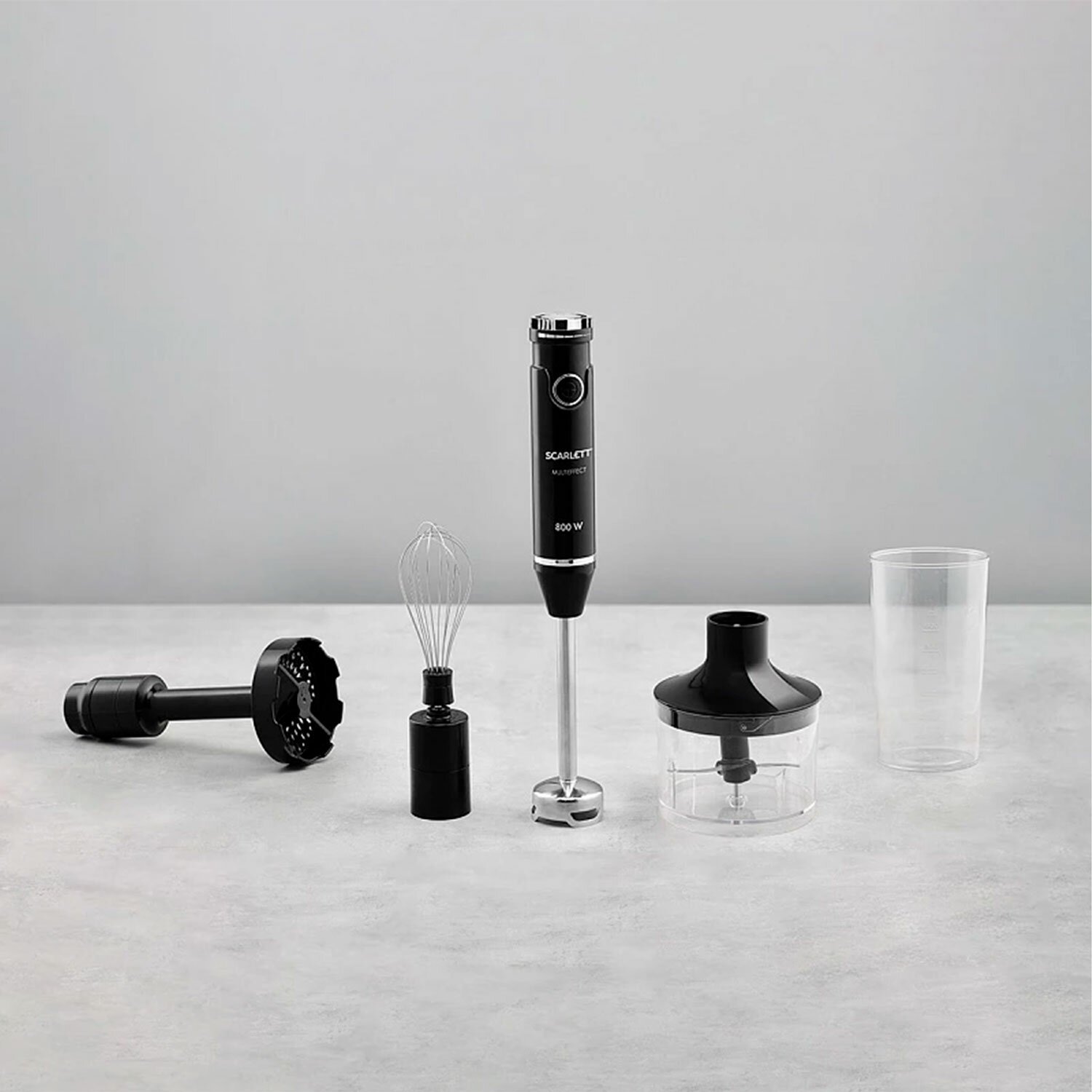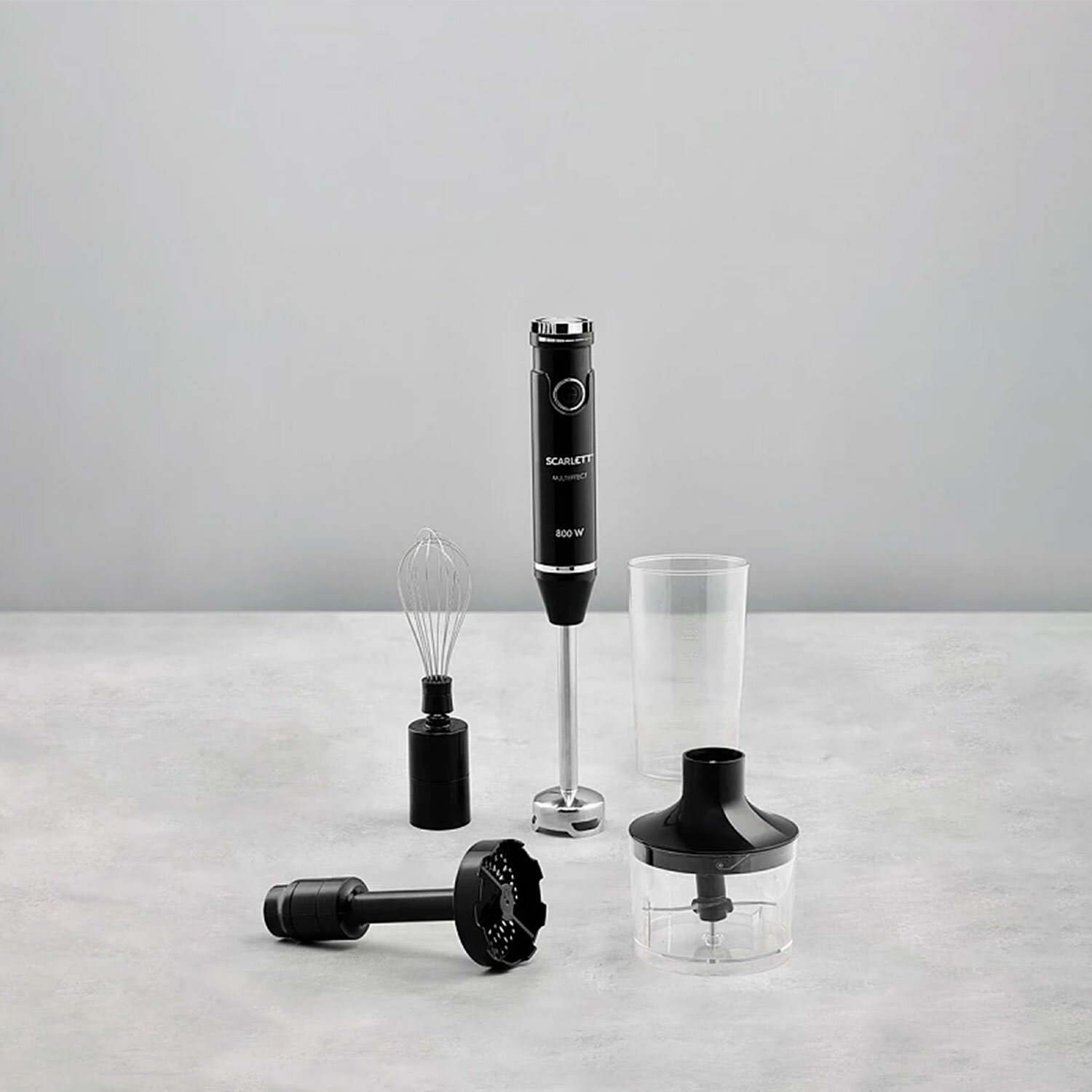 Блендер погружной SCARLETT SC-HB42M49, 800Вт, 14 скоростей, 4 насадки, стакан, черный