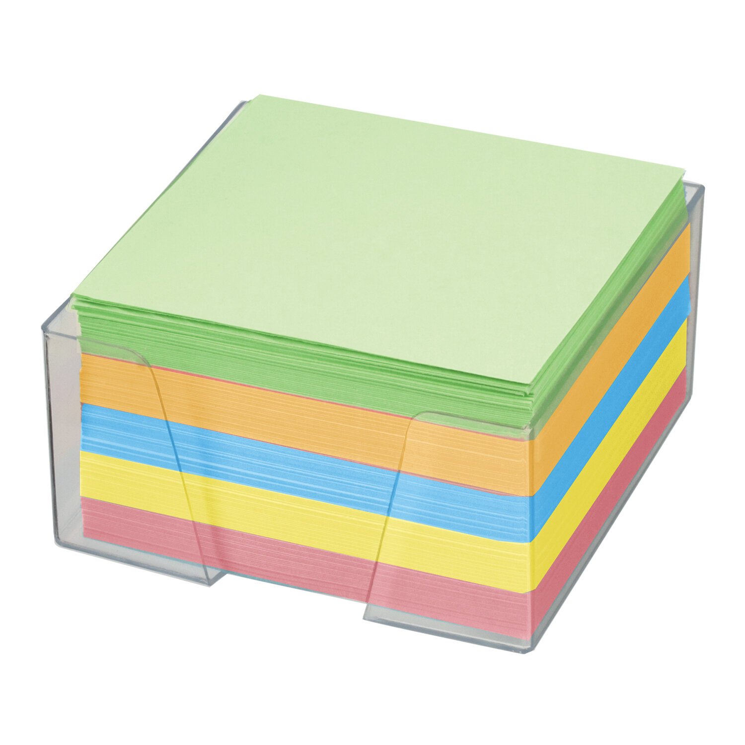 Блок для записей ОФИСМАГ в подставке прозрачной, куб 9х9х9 см, цветной, 127799