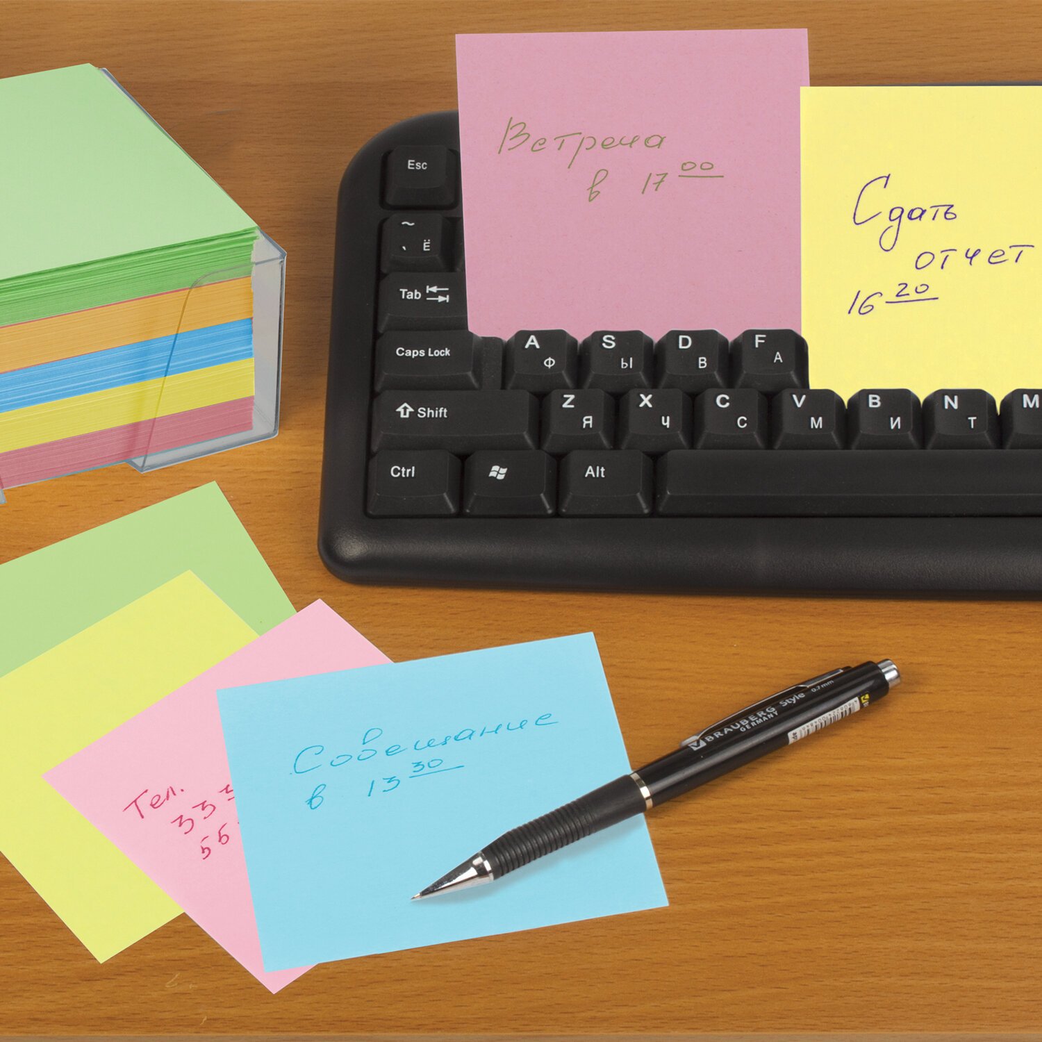 Блок для записей BRAUBERG в подставке прозрачной, куб 9х9х5 см, цветной, 122226