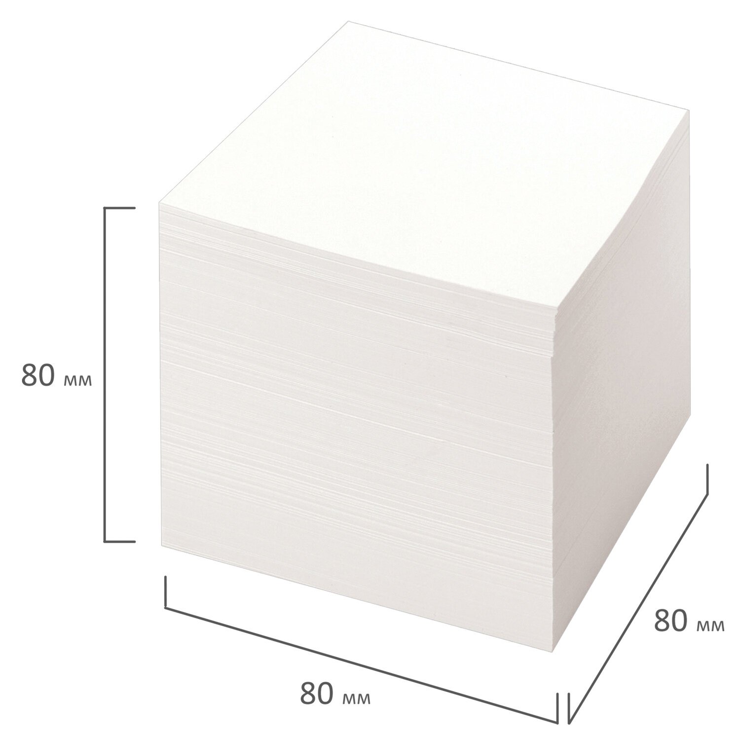 Блок высотой 8 см сложен из квадратных листов размером 8х8 см. Листы изготовлены из высококачественной офсетной бумаги плотностью 65 г/м2 и белизной 90-92%. Блок для записей подходит для письма любыми типами ручек и карандашей. Поставляется в плотной термоусадочной пленке, защищающей при транспортировке.