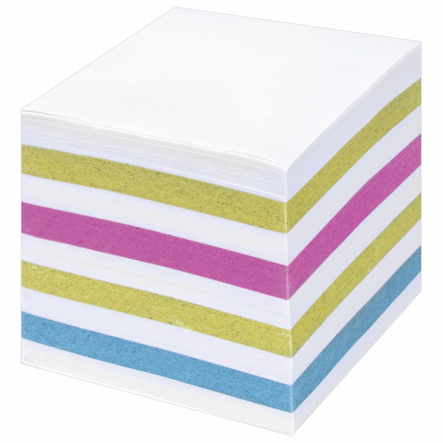 Блок для записей STAFF непроклеенный, куб 9х9х9 см, цветной, чередование с белым, 126367