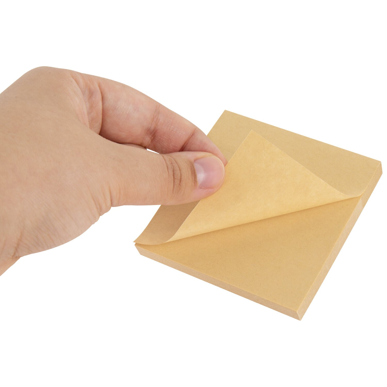Блок стикеров из крафтовой бумаги в форме квадрата 76х76 мм состоит из 100 листов. Плотность бумаги составляет 75 г/м2. Клейкий слой - 35 Н/м. Легко клеятся к любой поверхности. Не оставляют следов. Блок упакован в полиэтиленовую пленку.