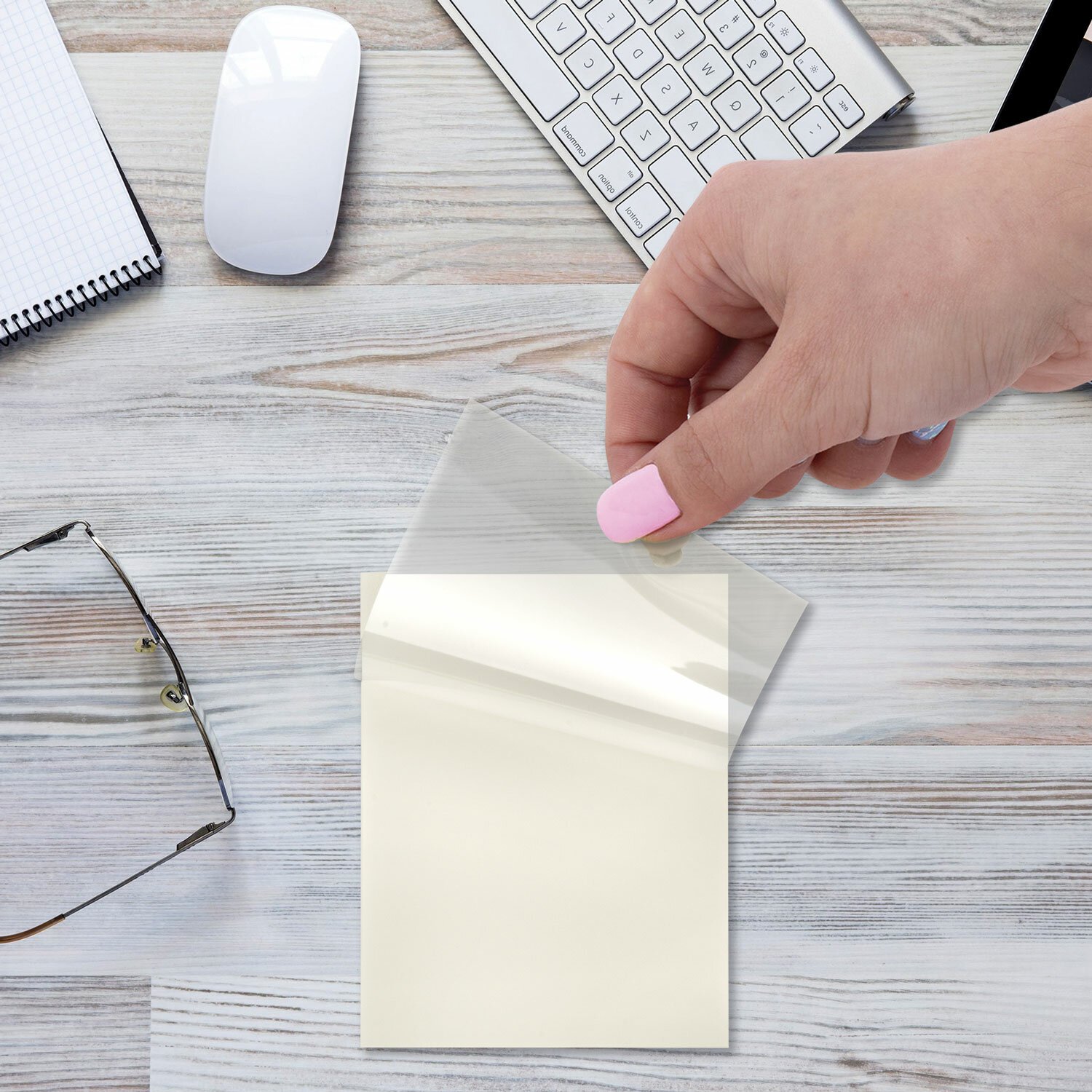 Блок пластиковых прозрачных стикеров в форме прямоугольника размером 70х90 мм состоит из 50 листов. Стикеры легко клеятся к любой поверхности. Возможно многоразовое использование. Не оставляют следов, водостойкие. Сохраняют свои клейкие качества в независимости от способа отделения от блока.