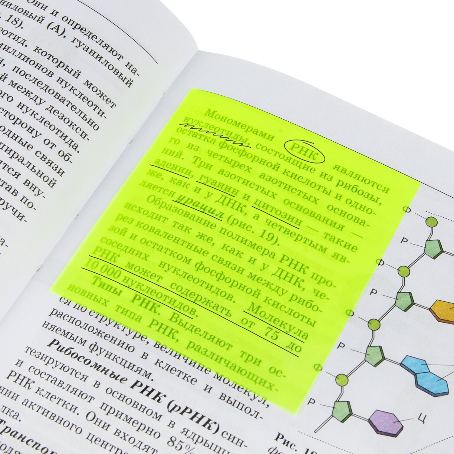 Закладки клейкие неоновые STAFF, 45х12 мм, 100 штук (5 цветов х 20 листов), на пластиковом основании, 129355