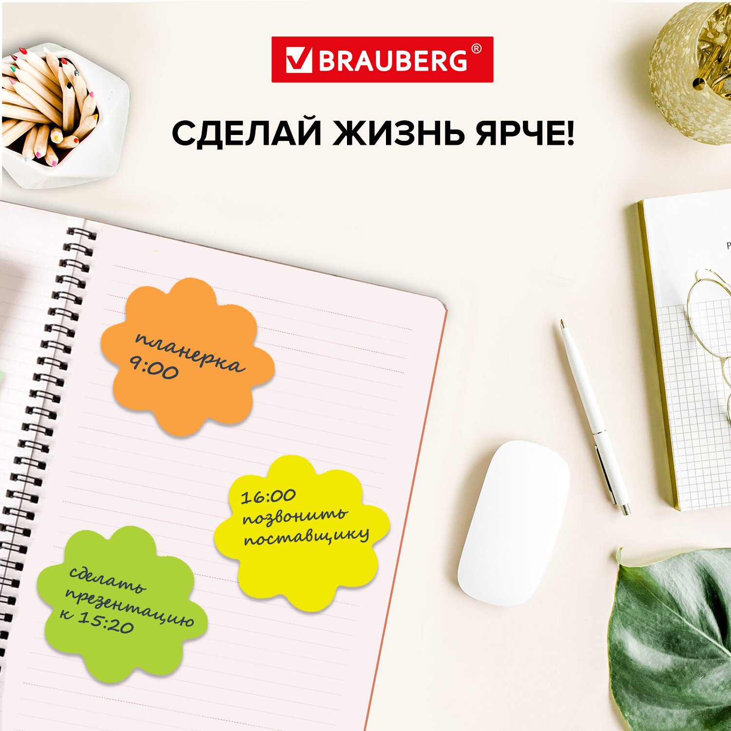 Блок самоклеящийся (стикеры), фигурный, BRAUBERG, НЕОНОВЫЙ "Цветок", 250 листов, 5 цветов, 126691