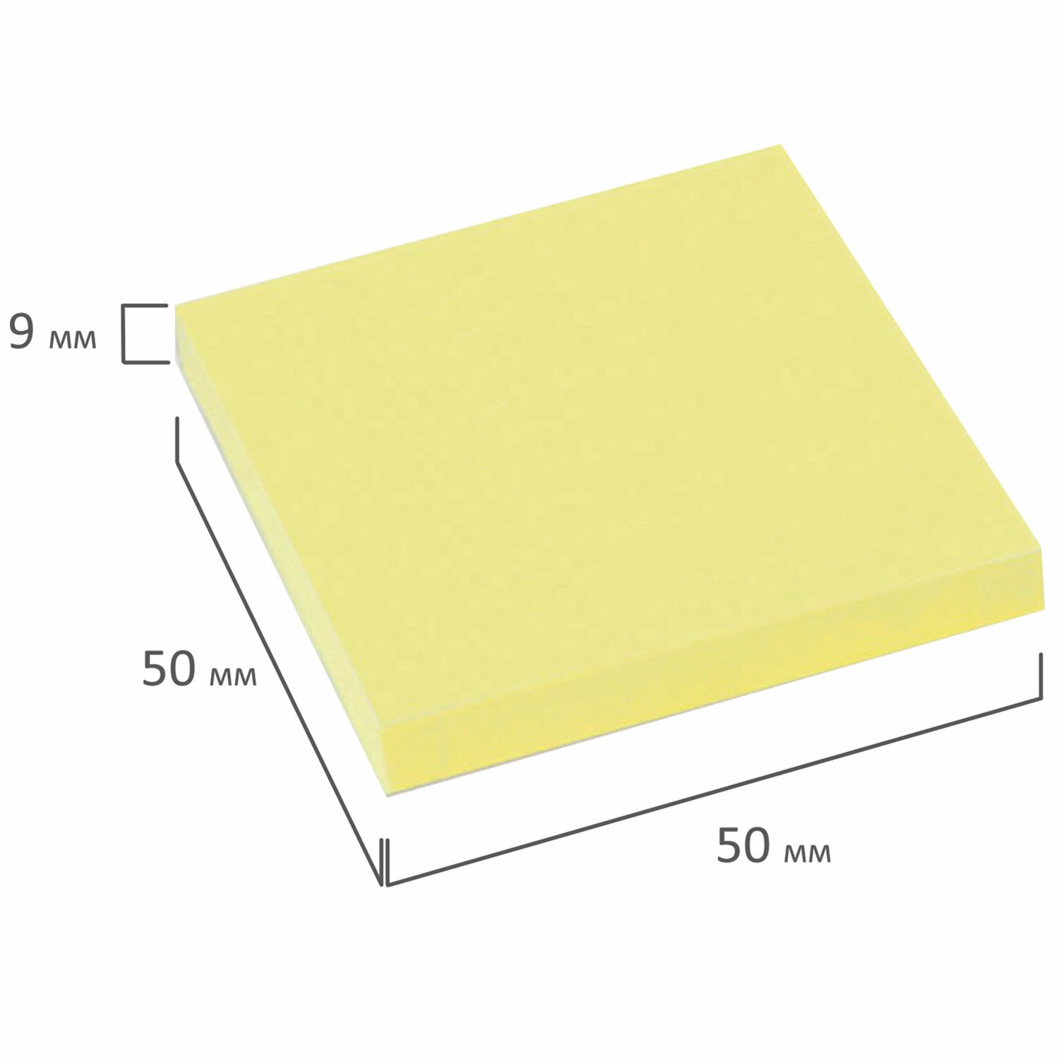 Стикеры жёлтого пастельного цвета в форме квадрата 50х50 мм состоят из 100 листов. Плотность бумаги составляет 75 г/м2. Клейкий слой - 22 Н/м. Легко клеятся к любой поверхности. Не оставляют следов. Упакованы в полиэтиленовую пленку.
