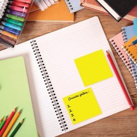 Стикеры пастельного жёлтого цвета в форме куба 76х76 мм состоят из 100 листов. Плотность бумаги составляет 75 г/м2. Легко клеятся к любой поверхности. Не оставляют следов. Упакованы в полиэтиленовую пленку.
