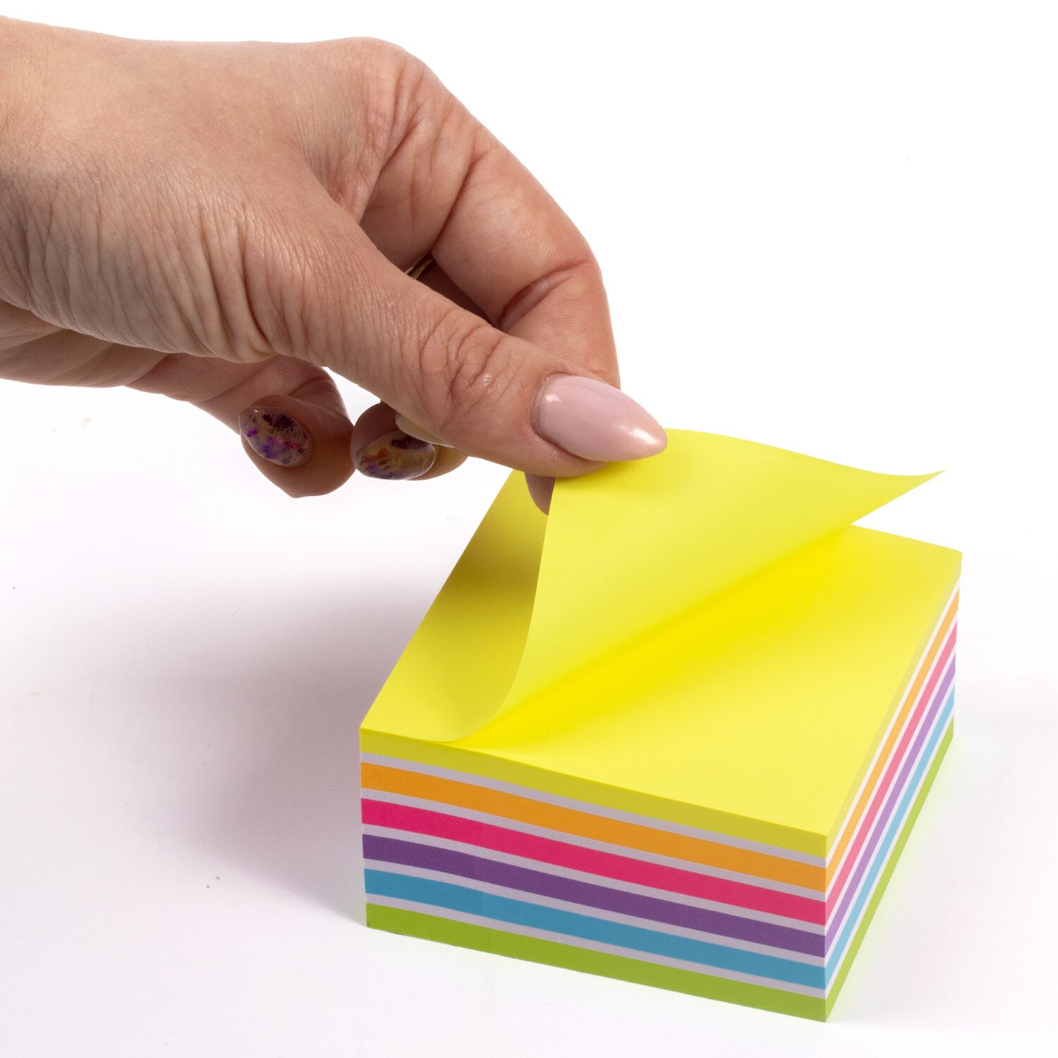Самоклеящийся блок состоит из 400 листов 7 неоновых цветов. Размер: 76х76 мм. Плотность бумаги составляет 75 г/м2. Клейкий слой - 32 Н/м. Стикеры легко клеятся к любой поверхности, не оставляют следов. Упакованы в полиэтиленовую пленку.