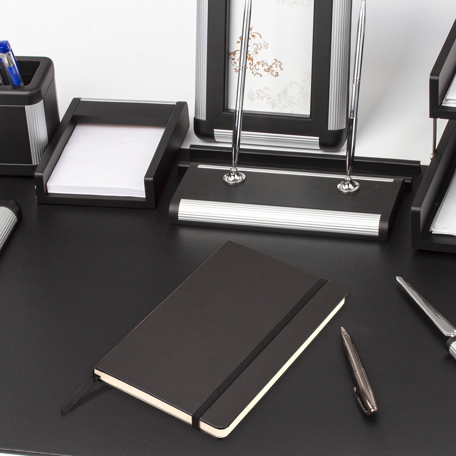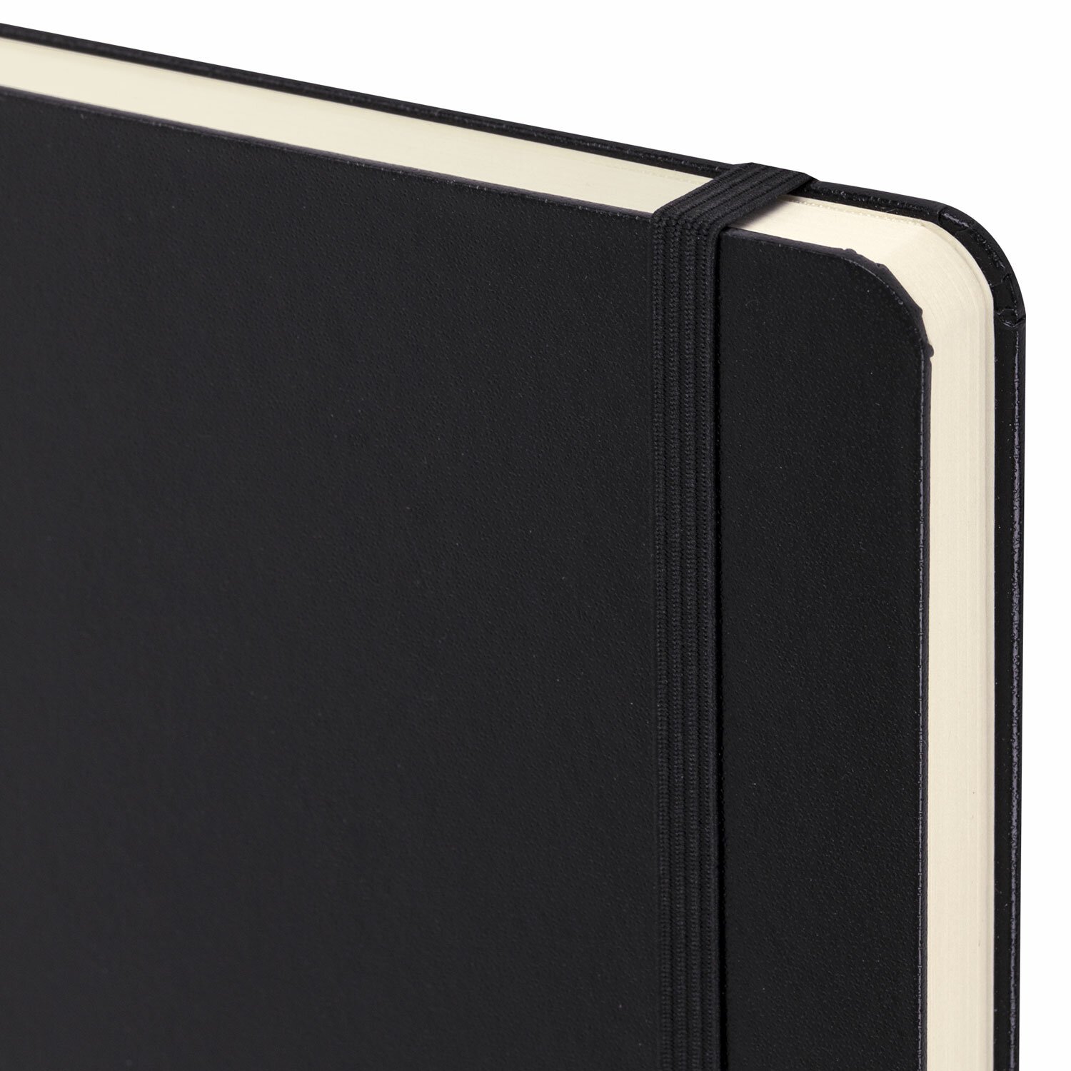 Твердая обложка стилизована под "классическую кожу". Имеет закругленные уголки, подходит для горячего тиснения и имеет резинку-фиксатор, благодаря чему не раскроется в сумке или портфеле и листы не помнутся. На внутренней стороне задней обложки есть декоративный конверт для разных мелочей в виде визиток, напоминалок или других милых и полезных мелочей. 96 листов позволят зафиксировать большой объем информации. Линовка блока в точку дает возможность аккуратно заполнить цифровые значения, а также нанести чертежные зарисовки. Внутренний блок выполнен из офсета цвета слоновой кости плотностью 80 г/м2 и крепится к обложке с помощью книжного переплета. Дополнением является закладка-ляссе, с помощью которой при необходимости можно быстро открыть нужную страницу. Формат блокнота А5 (130х210 мм) позволит владельцу поместить его в кейс или сумку малых габаритов.