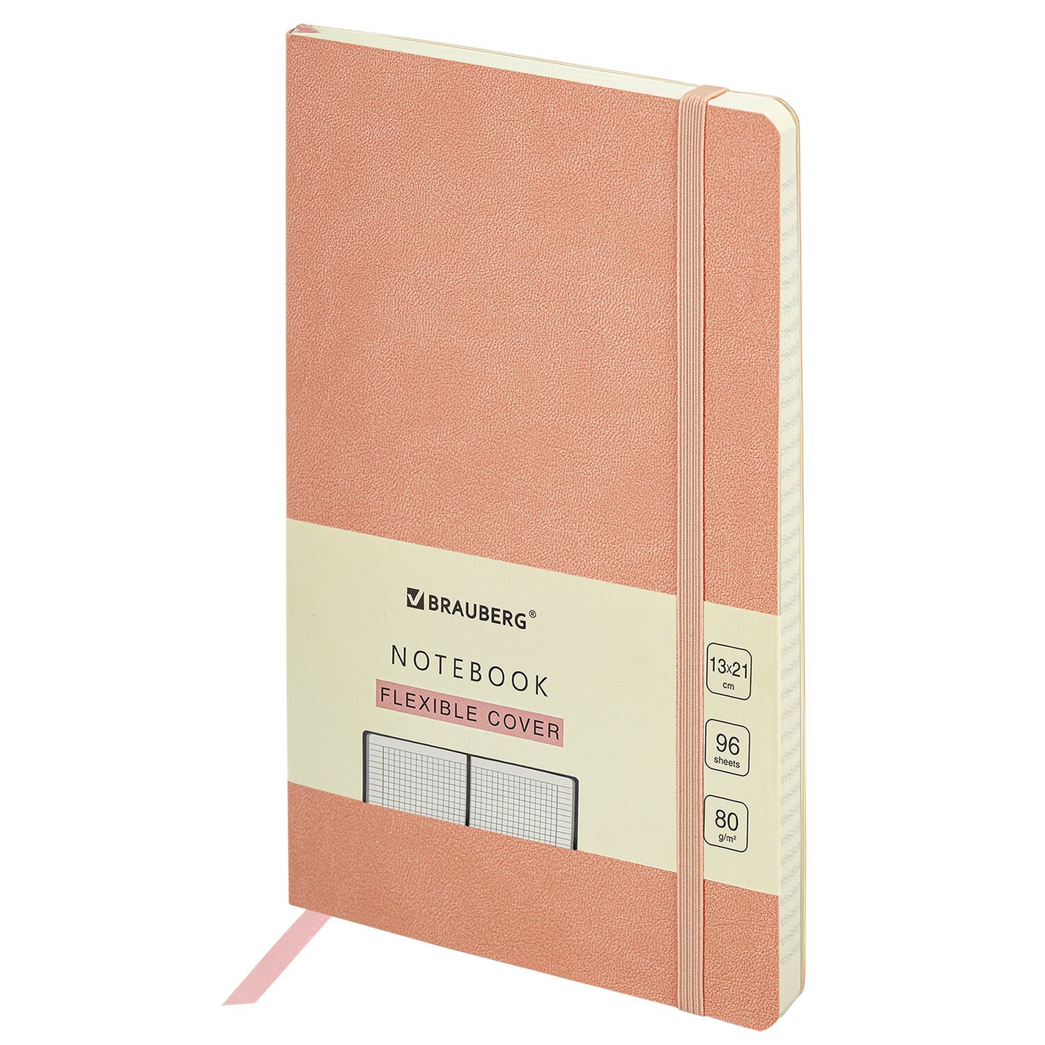 Блокнот А5 (130х210 мм), BRAUBERG ULTRA, под кожу, 80 г/м2, 96 л., клетка, светло-розовый, 113008