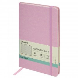Блокнот А5 (148x218 мм), BRAUBERG "Metropolis Special", под кожу, 80 л., резинка, клетка, розовый, 111579