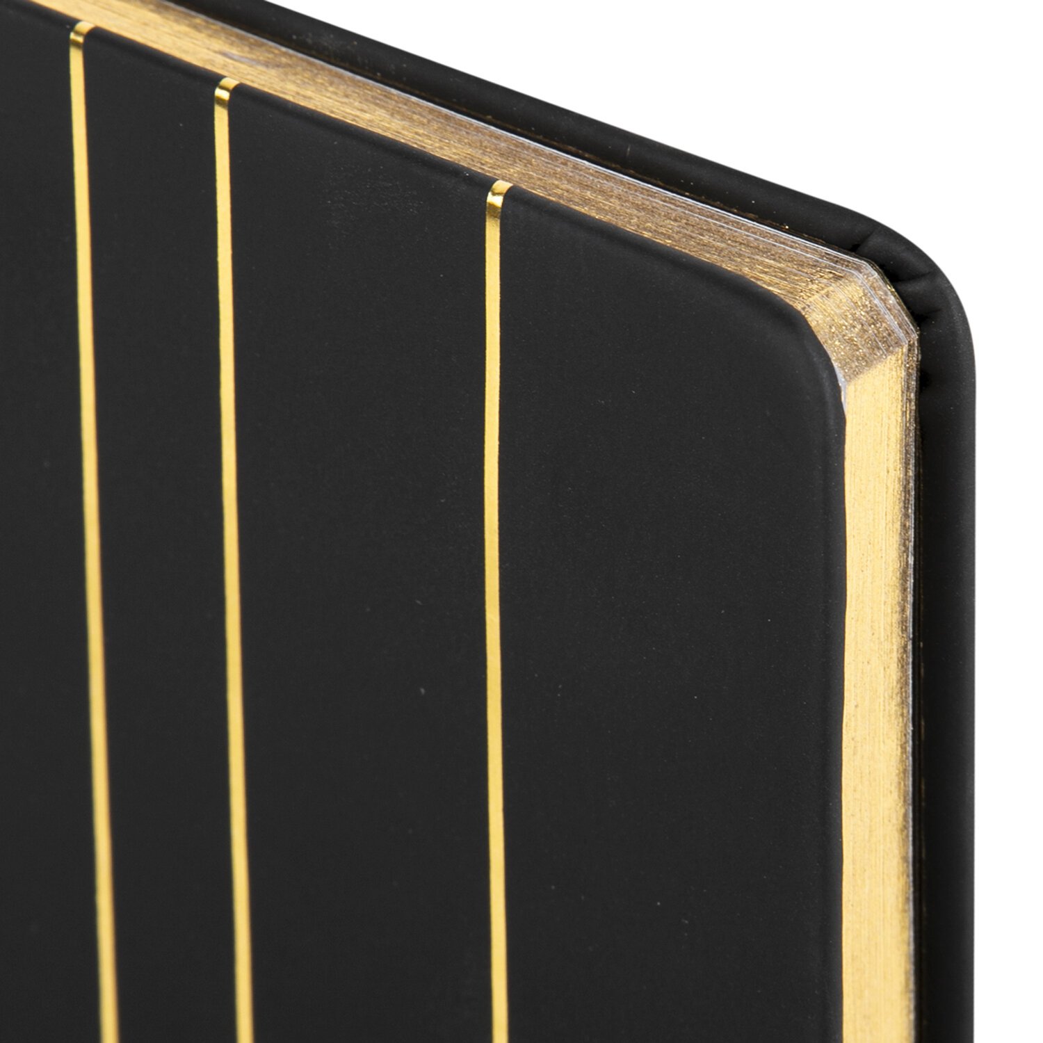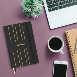 Твердая обложка стилизована под кожу. Имеет закругленные уголки. Подходит для горячего тиснения. 80 листов позволят зафиксировать большой объем информации. Линовка блока в линию. Расстояние между линовками составляет 6 мм. Внутренний блок выполнен из офсета белого цвета плотностью 70 г/м2 и крепится к обложке с помощью книжного переплета. Фольгированный срез блокнота придает изделию шарм. Дополнением являются закладки-ляссе, с помощью которых можно быстро открыть нужную страницу. Формат блокнота А5 (135х205 мм) позволит владельцу поместить его в кейс или сумку малых габаритов.