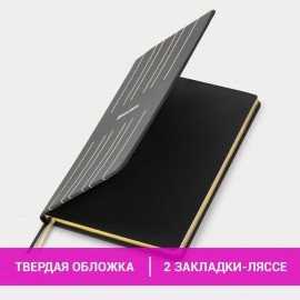 Блокнот А5 (148x218 мм), BRAUBERG "Metropolis Special", под кожу, 80 л., резинка, клетка, черный, 111577