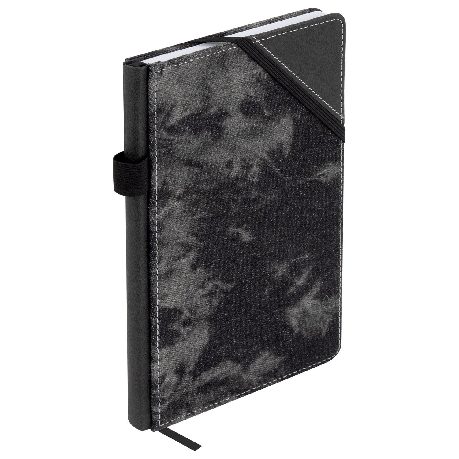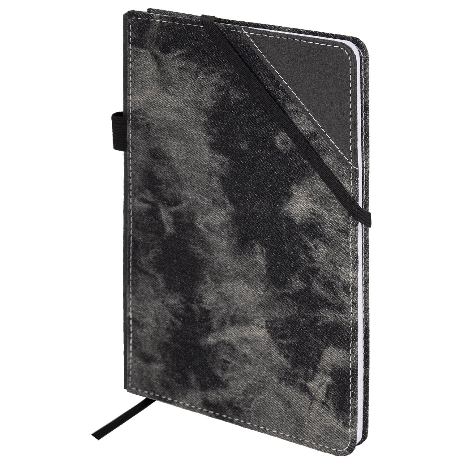 Блокнот А5 135x210мм BRAUBERG Denim, ткань/экокожа, резинка, держатель, 80л клетка, черный, 117140
